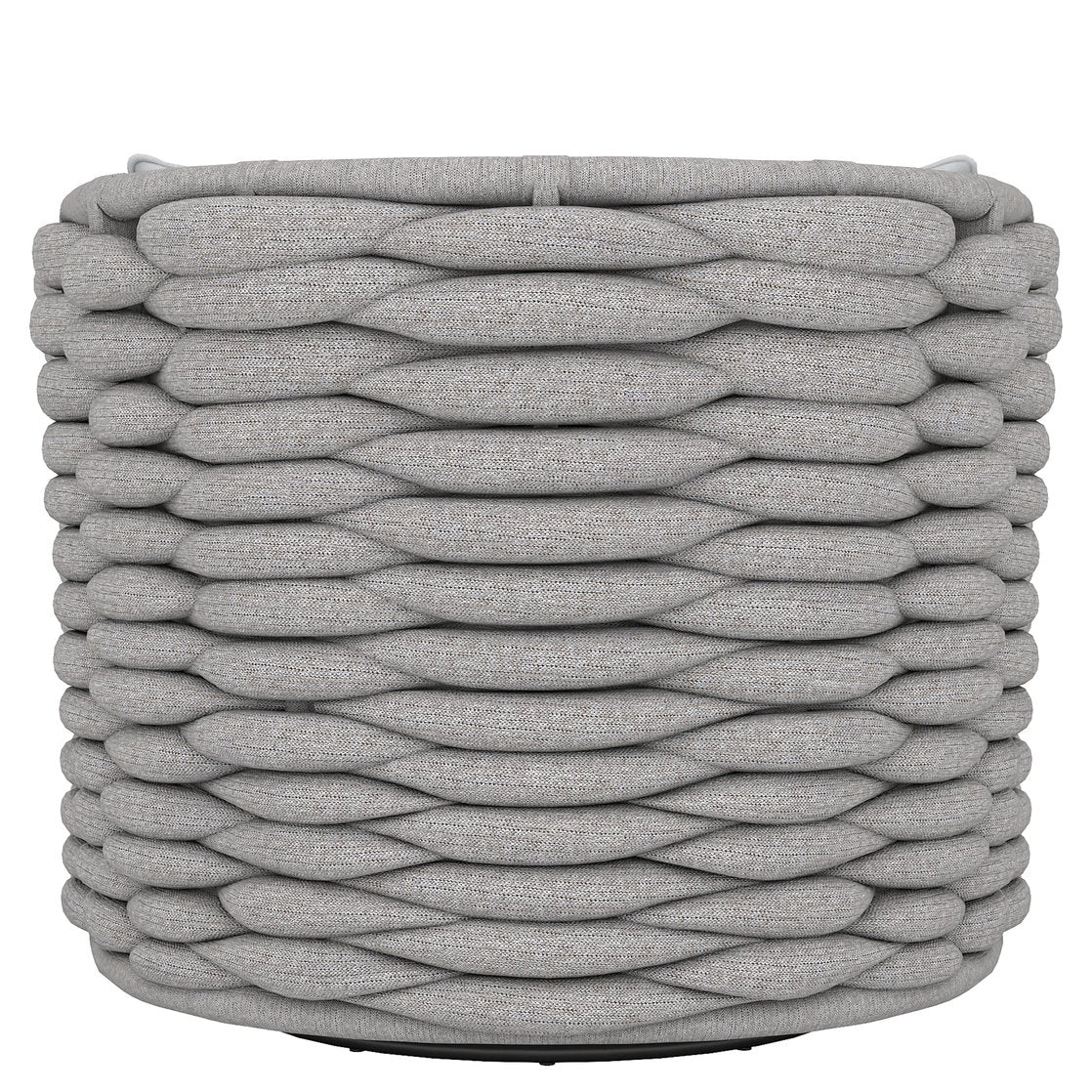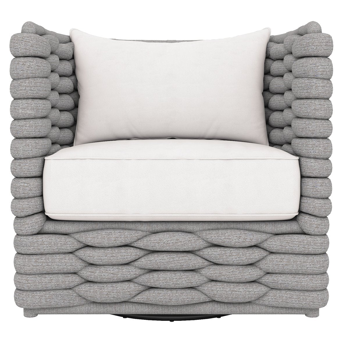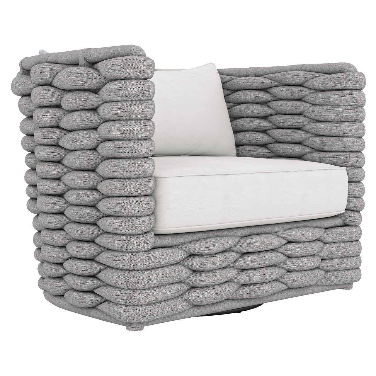 Elevate your outdoor living with the Bernhardt Wailea swivel chair — a refined blend of modern design and luxurious comfort. Thoughtfully crafted for durability and style, this chair features a distinctive soft-knit Nordic Gray sock weave over a powder-coated aluminum frame, delivering a welcoming silhouette and resilient performance for outdoor settings.
