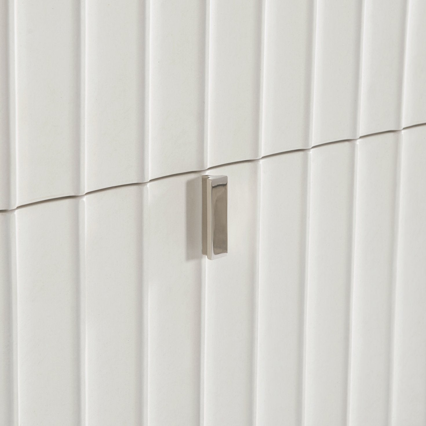 - Two soft-close drawers with fluted design cast resin drawer fronts and metal pulls.