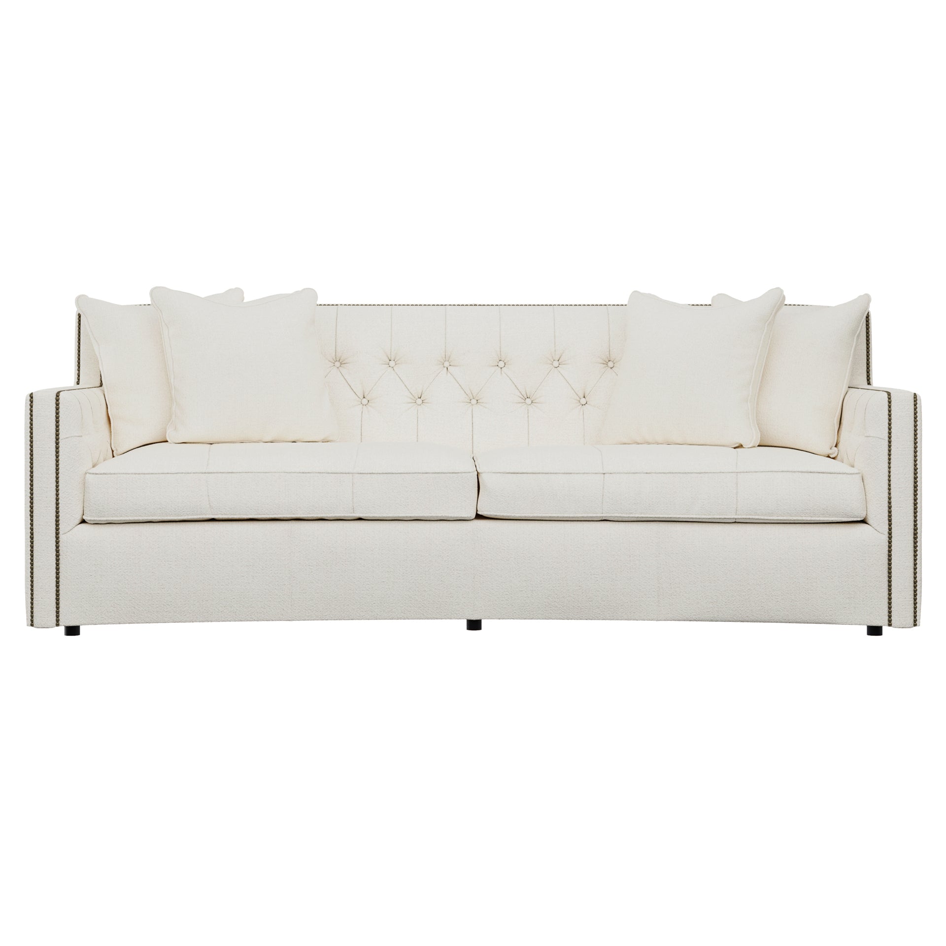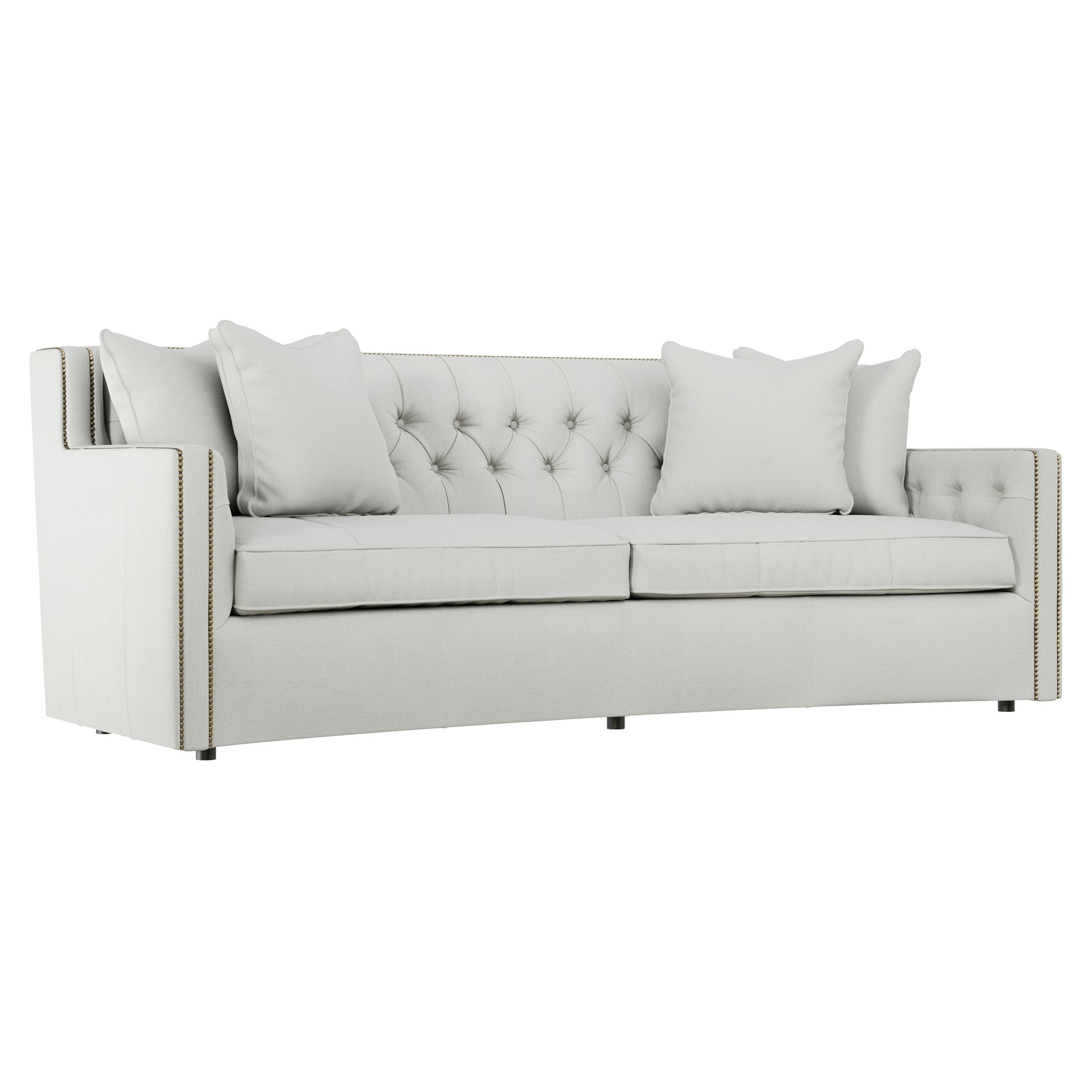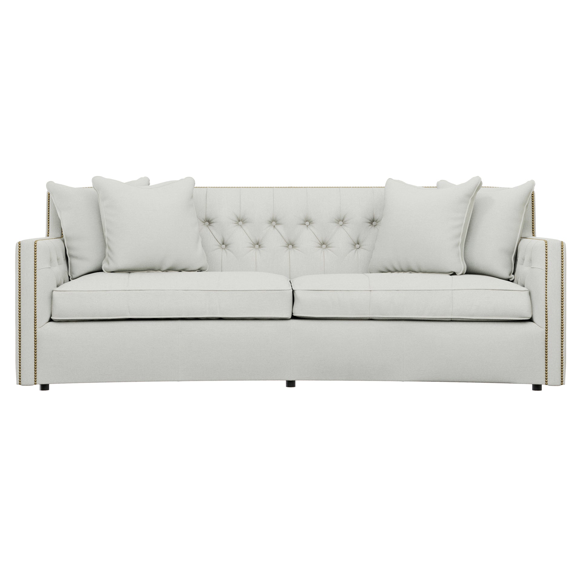- : With its subtle crescent shape and sophisticated design details, the Candace sofa offers luxurious comfort with elegant style. Classic elements like nailhead trim and button tufting create a refined, polished look, while sleek lines and track arms add contemporary appeal. The perfect mixture of traditional and modern style.