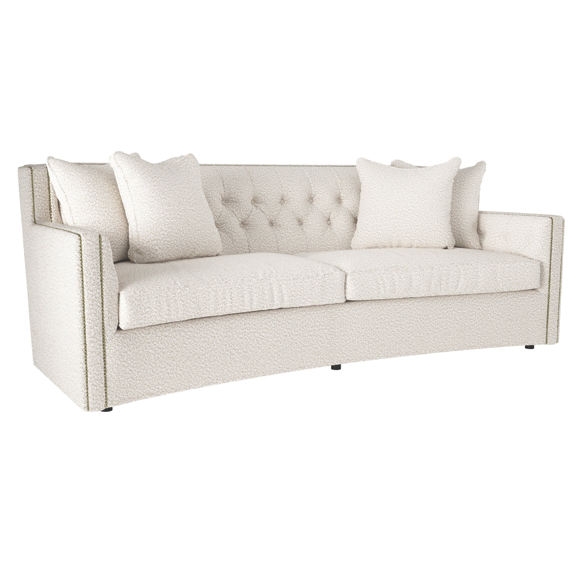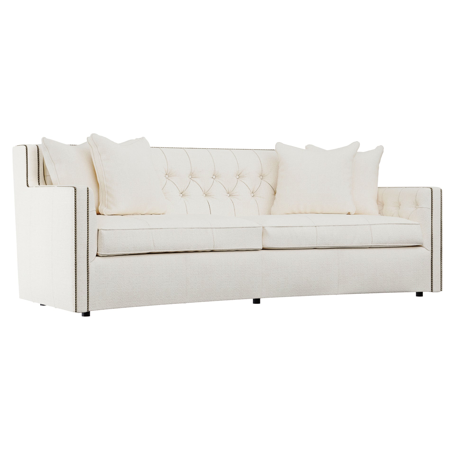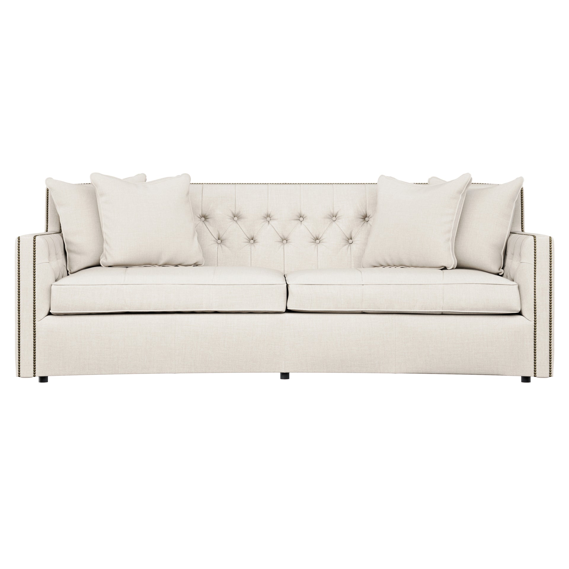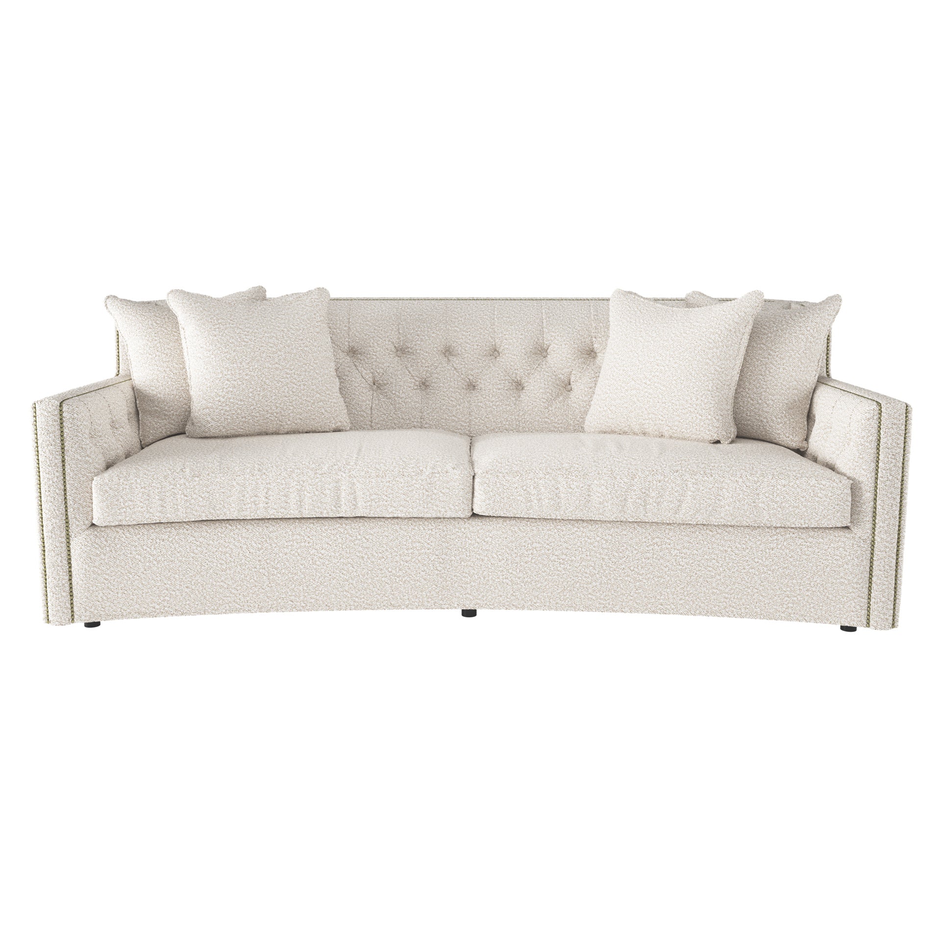 - : With its subtle crescent shape and sophisticated design details, the Candace sofa offers luxurious comfort with elegant style. Classic elements like nailhead trim and button tufting create a refined, polished look, while sleek lines and track arms add contemporary appeal. The perfect mixture of traditional and modern style.