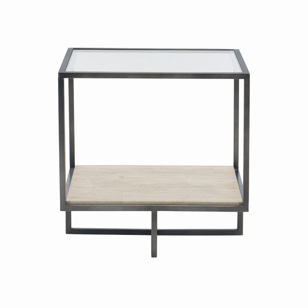 - Material 1: Tubular steel / Tempered glass / Travertine stone