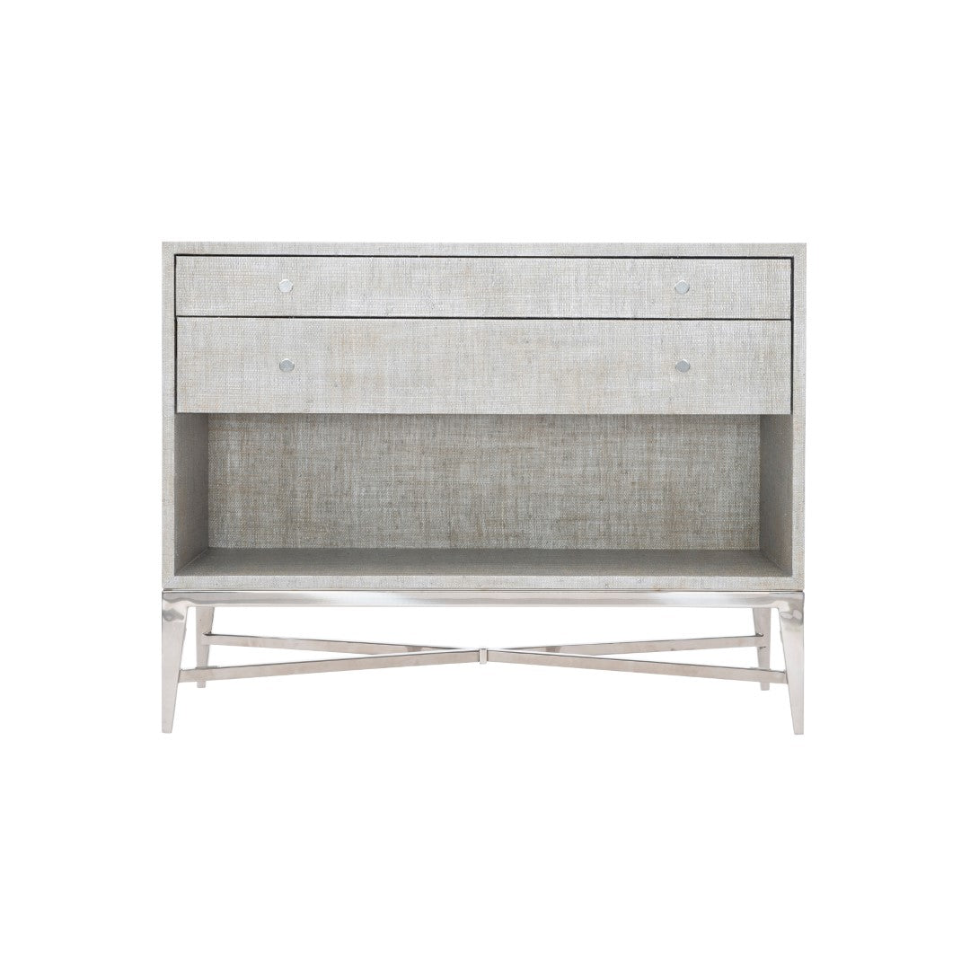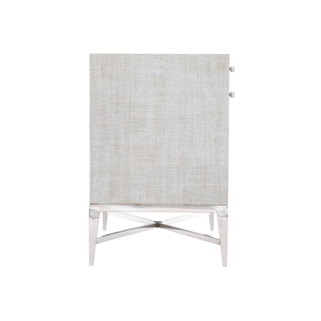 - Material 1: MDF, Polished Stainless Steel, Raffia, Hardware