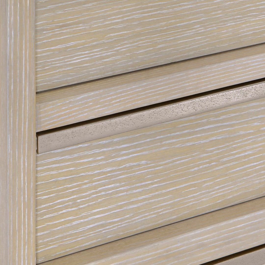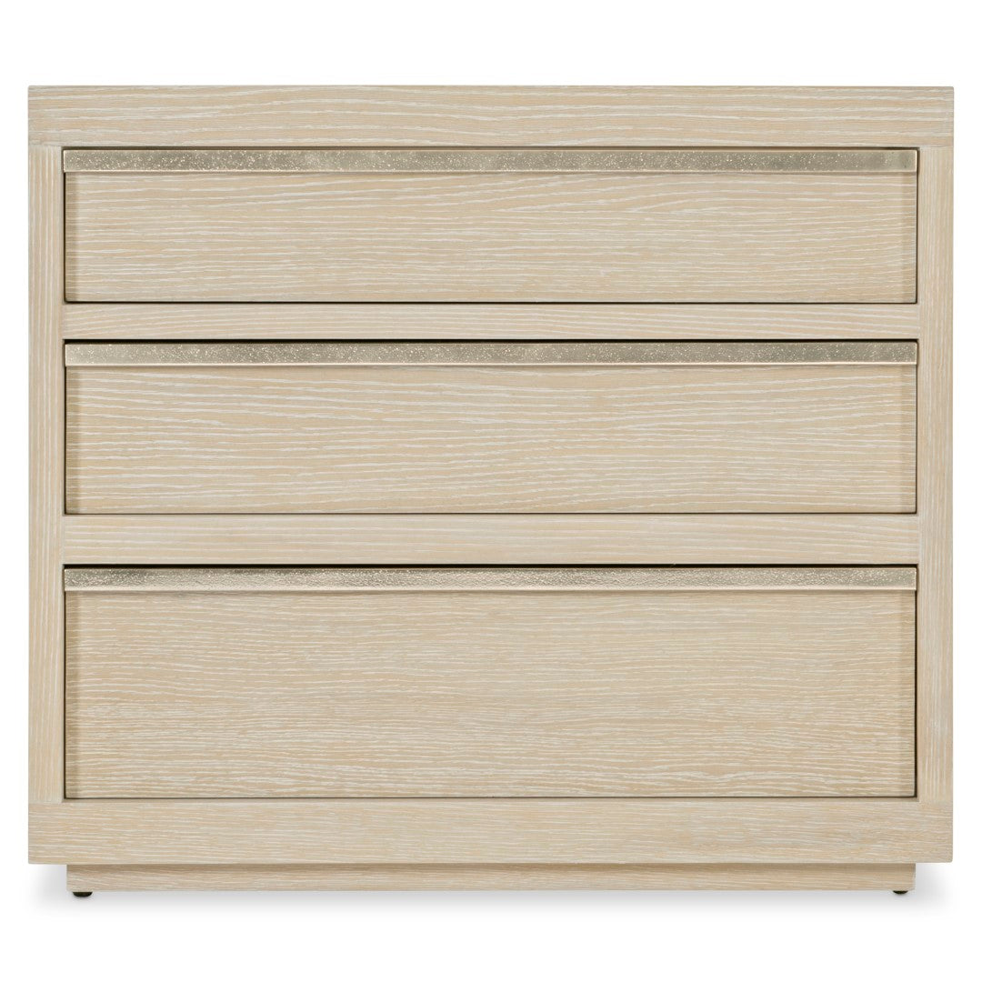 - Three soft-close drawers with aluminum tab pull, in Shiny Nickel finish, running the length of each drawer