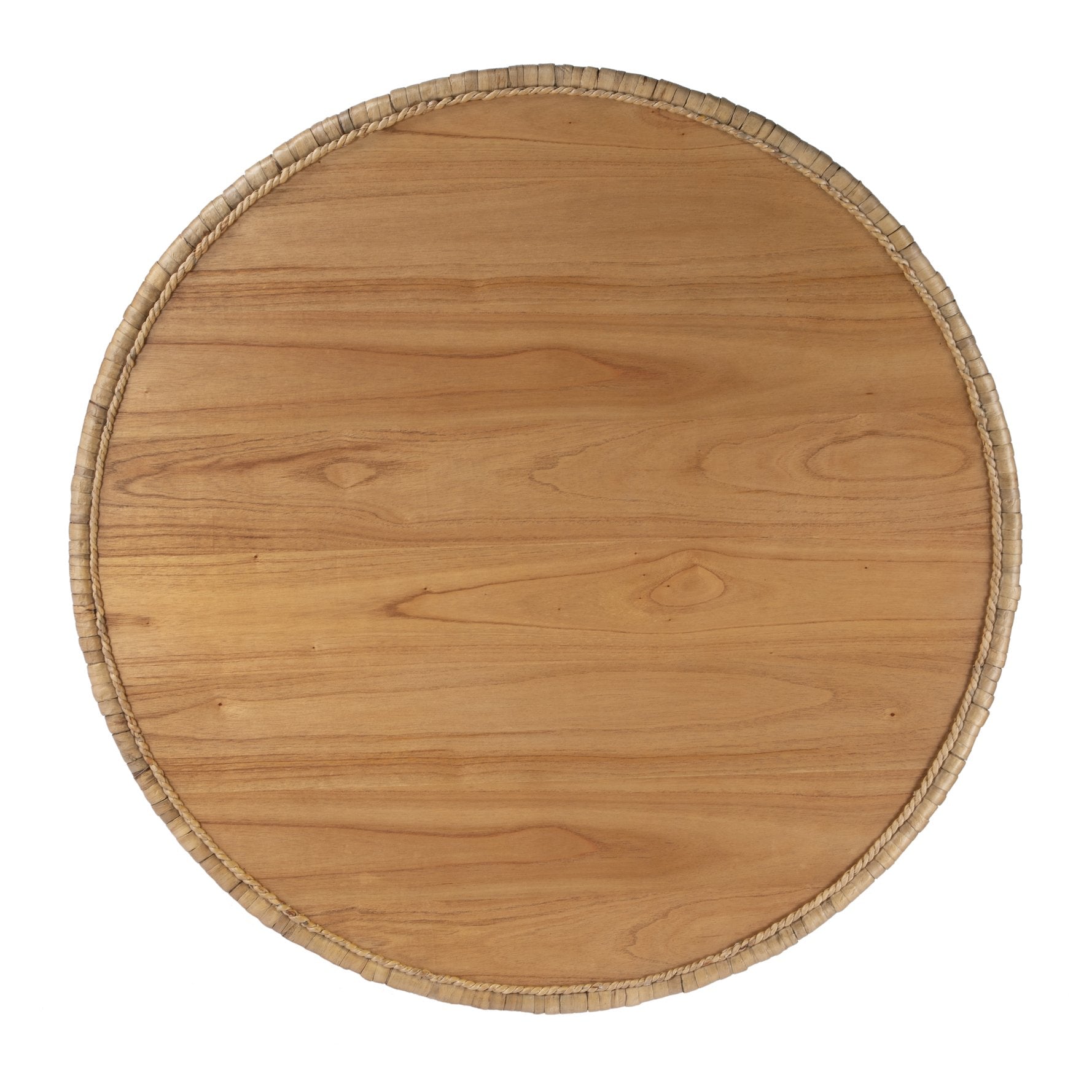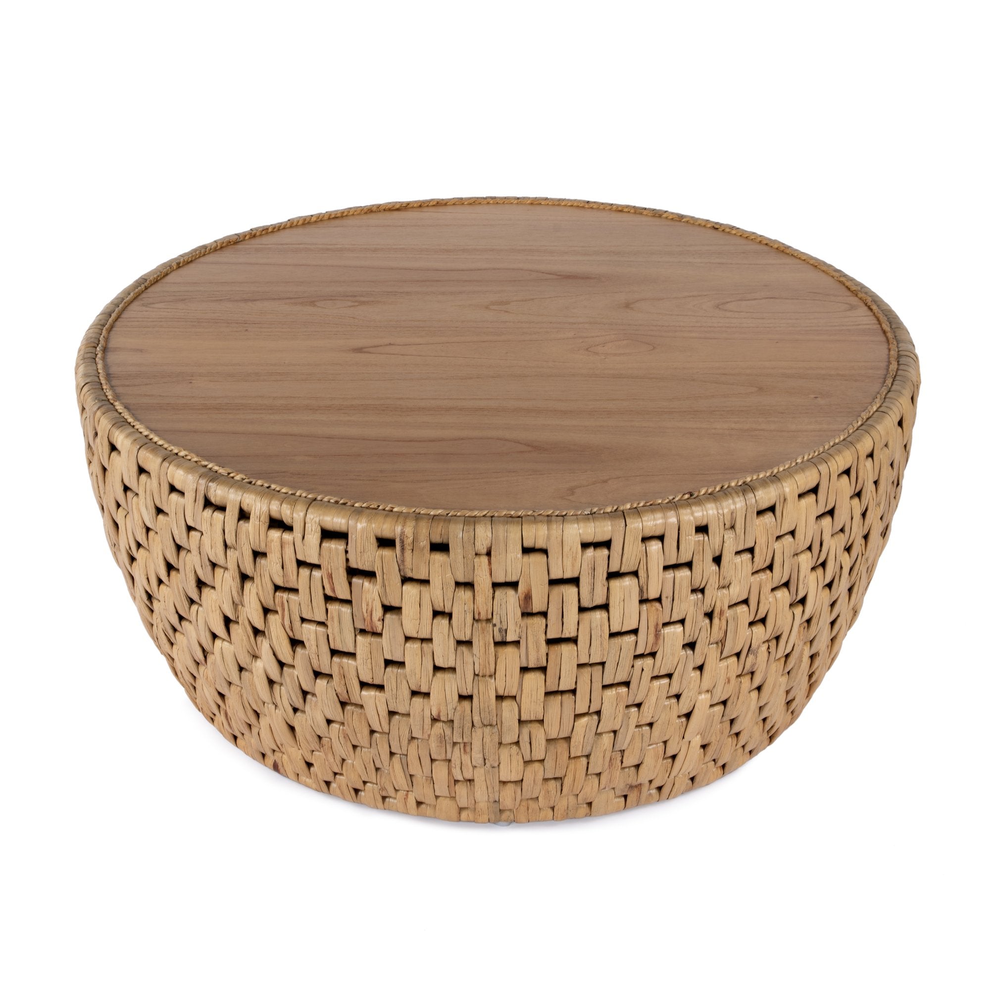 - Features a braided water hyacinth weave on the outer edges of the inset wood top for gorgeous decorative detail
