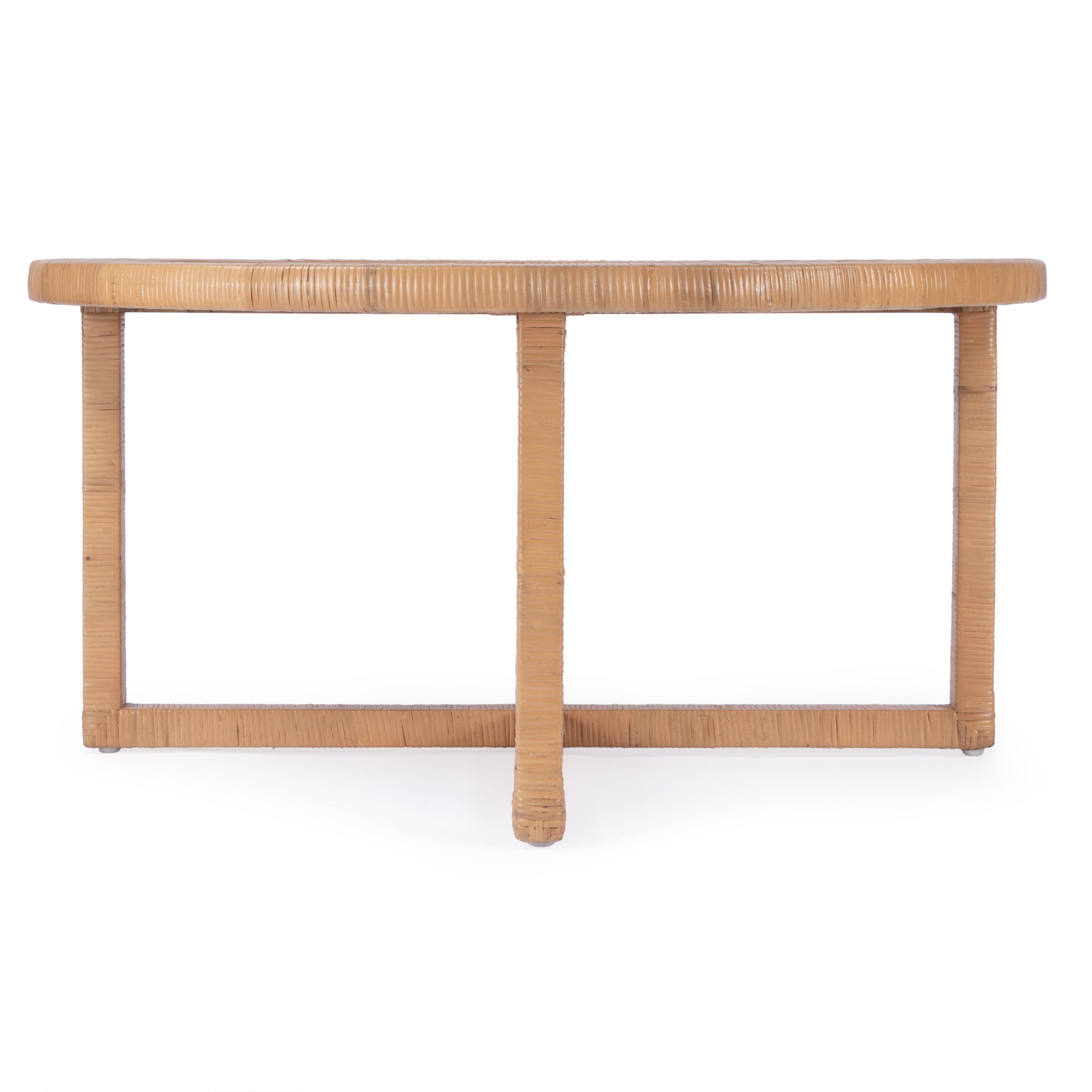 - Product Features (Construction Details): Mindi veneer top over engineered wood with a rattan frame and then wrapped in water hyacinth with a protective clear lacquer finish.