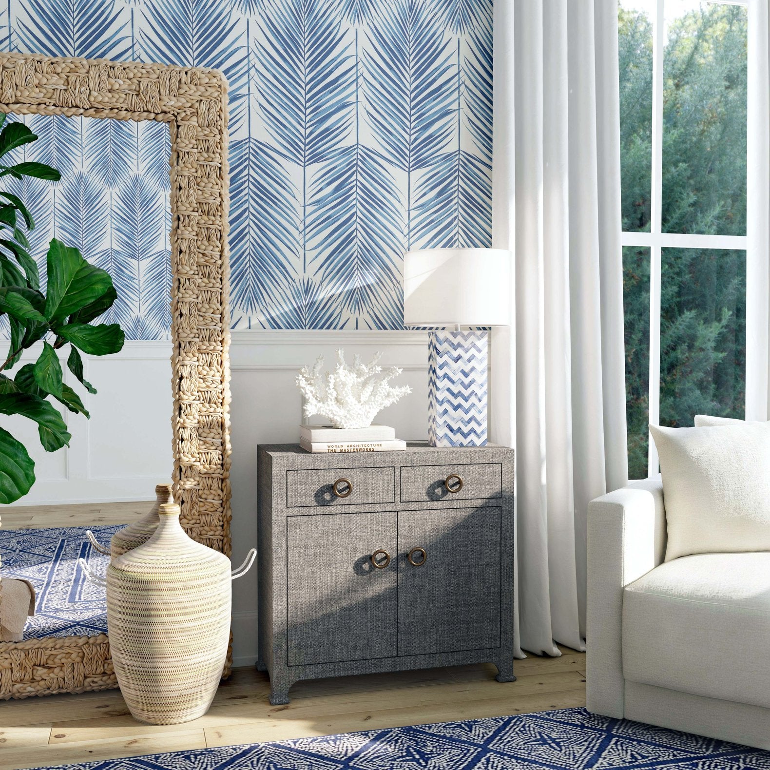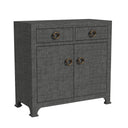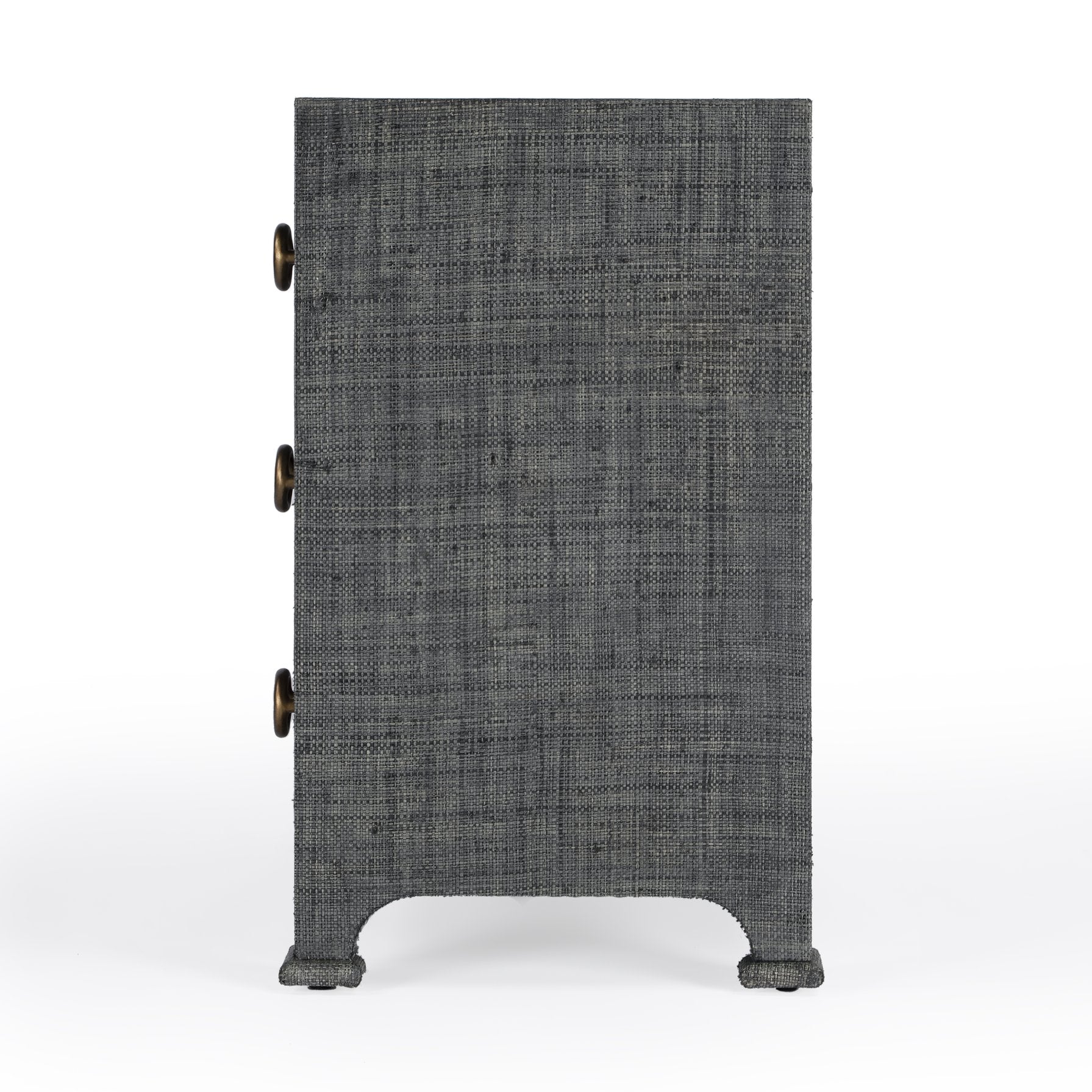 - Product Features (Construction Details): Construction: Hand-wrapped in woven raffia, a durable straw-like material with distinctive markings and subtle tonal variations in the dyeing process that makes each piece truly unique. Features a clear lacquer finish of ww vinyl 20 sheen designed to protect the raffia while keeping a natural and textured feel to the piece, Dovetail joinery, metal glides