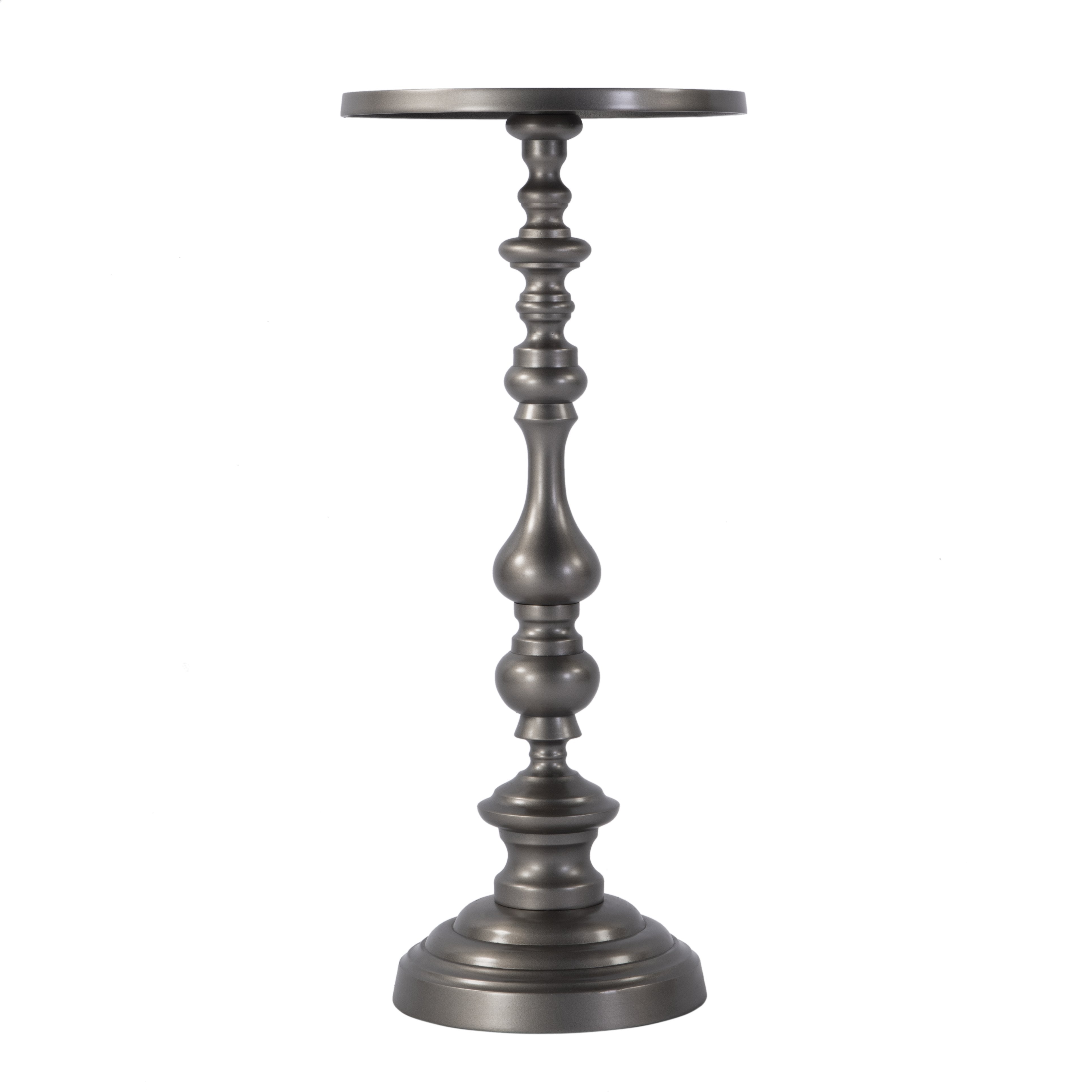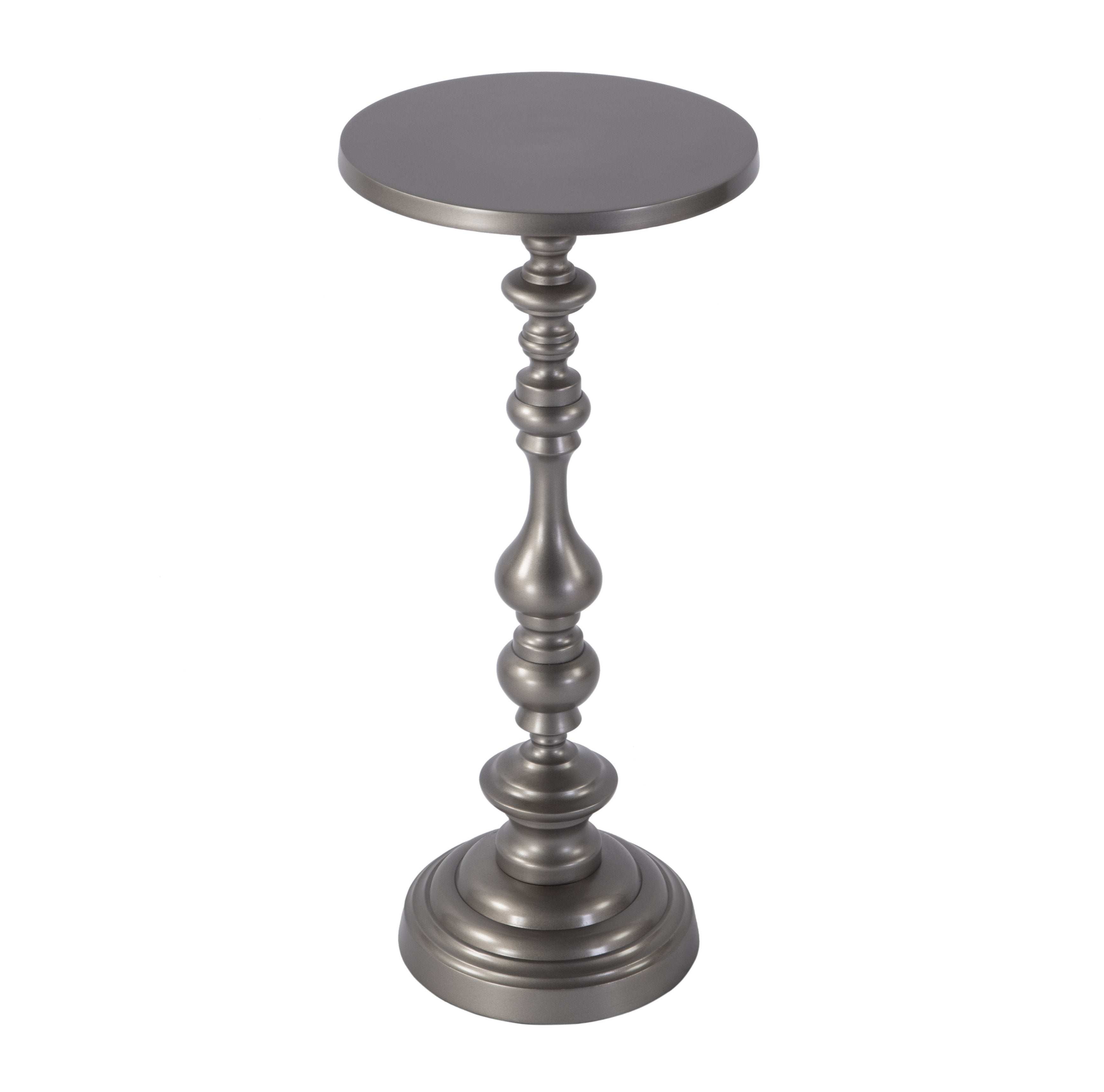 - Shape is round with a pedestal base