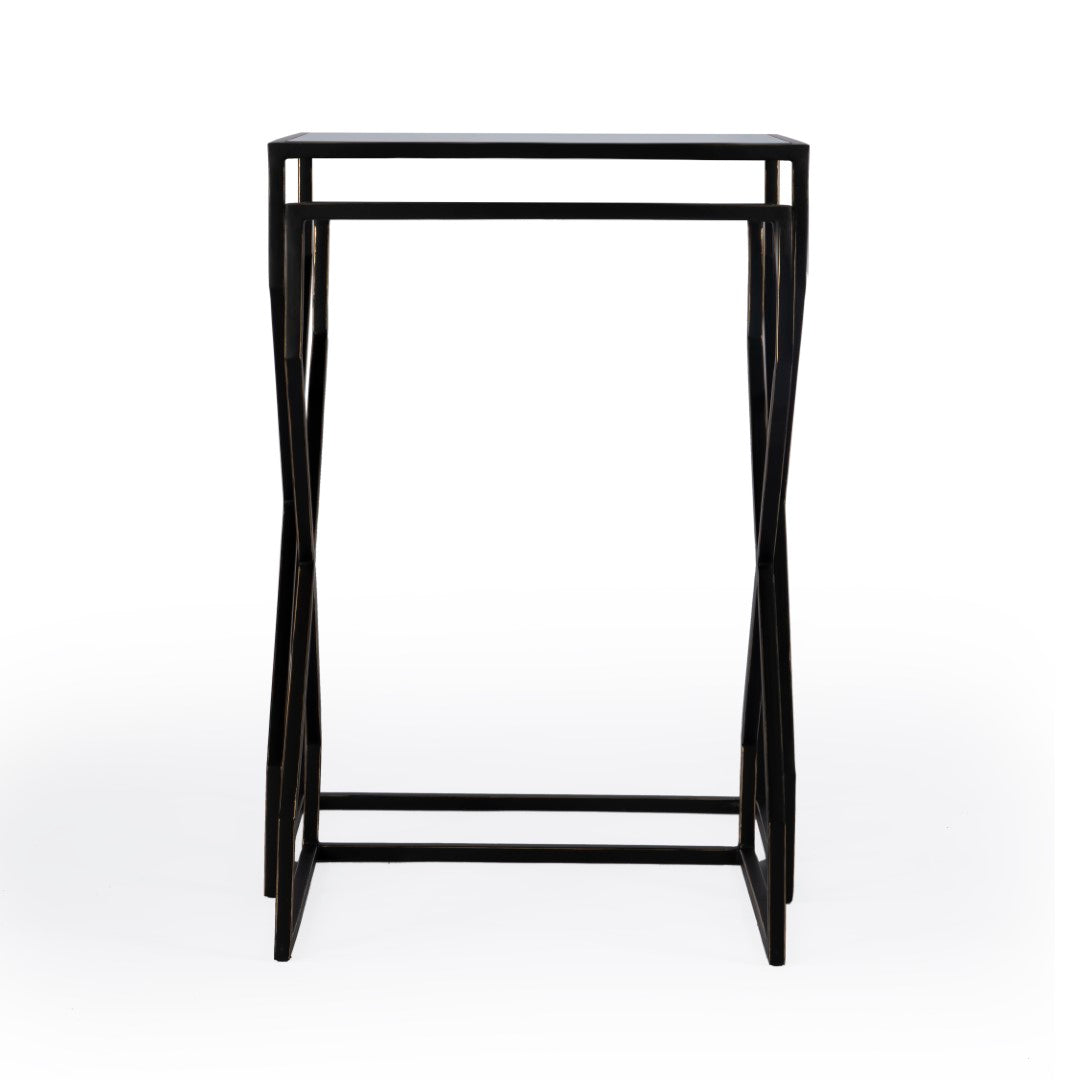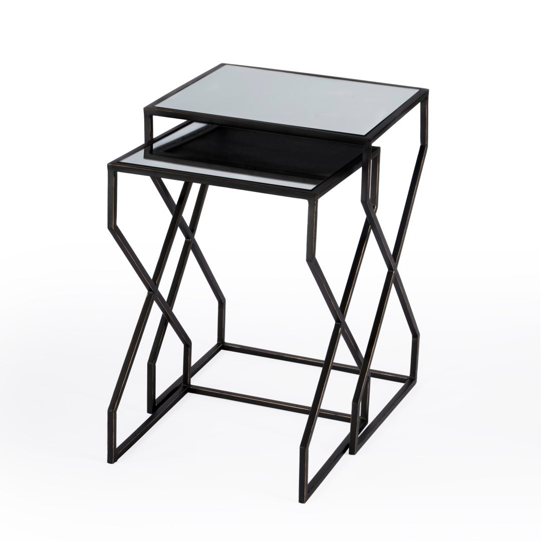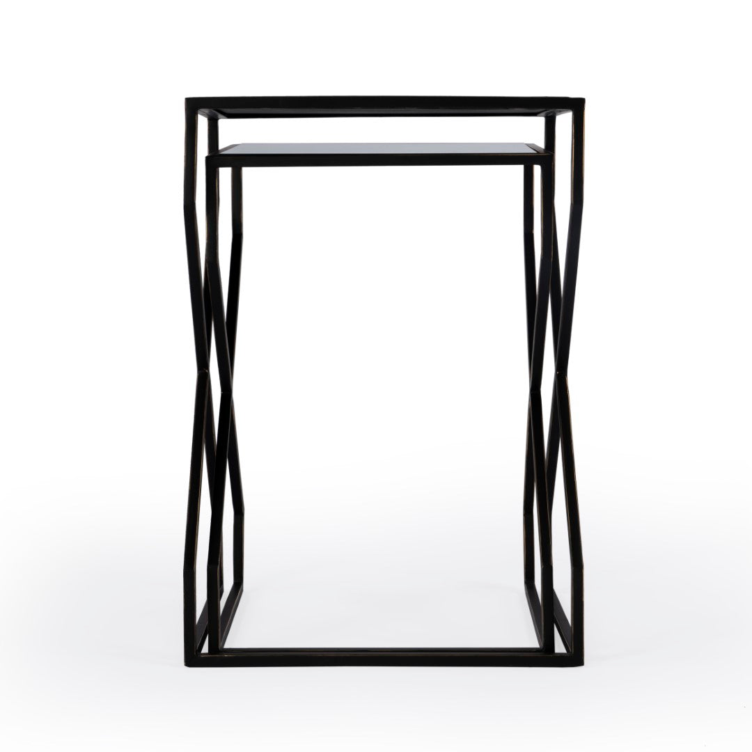 - Feature 2: Two piece set consisting of large and small tables that nest together. Large Table: 16.5"W x 13.5"D x 23.25"H, Small Table: 14.5"W x 13.5"D x 21.25"H