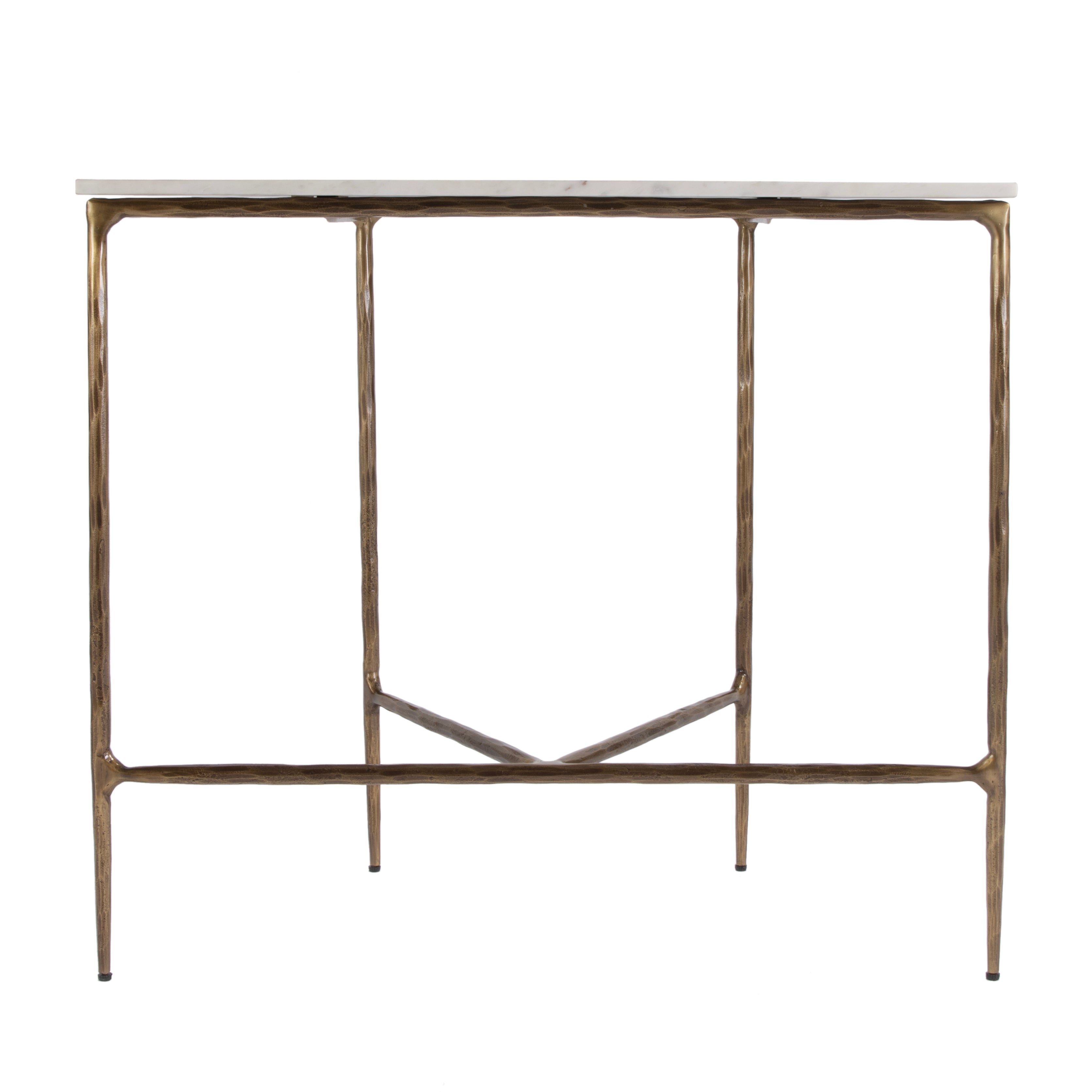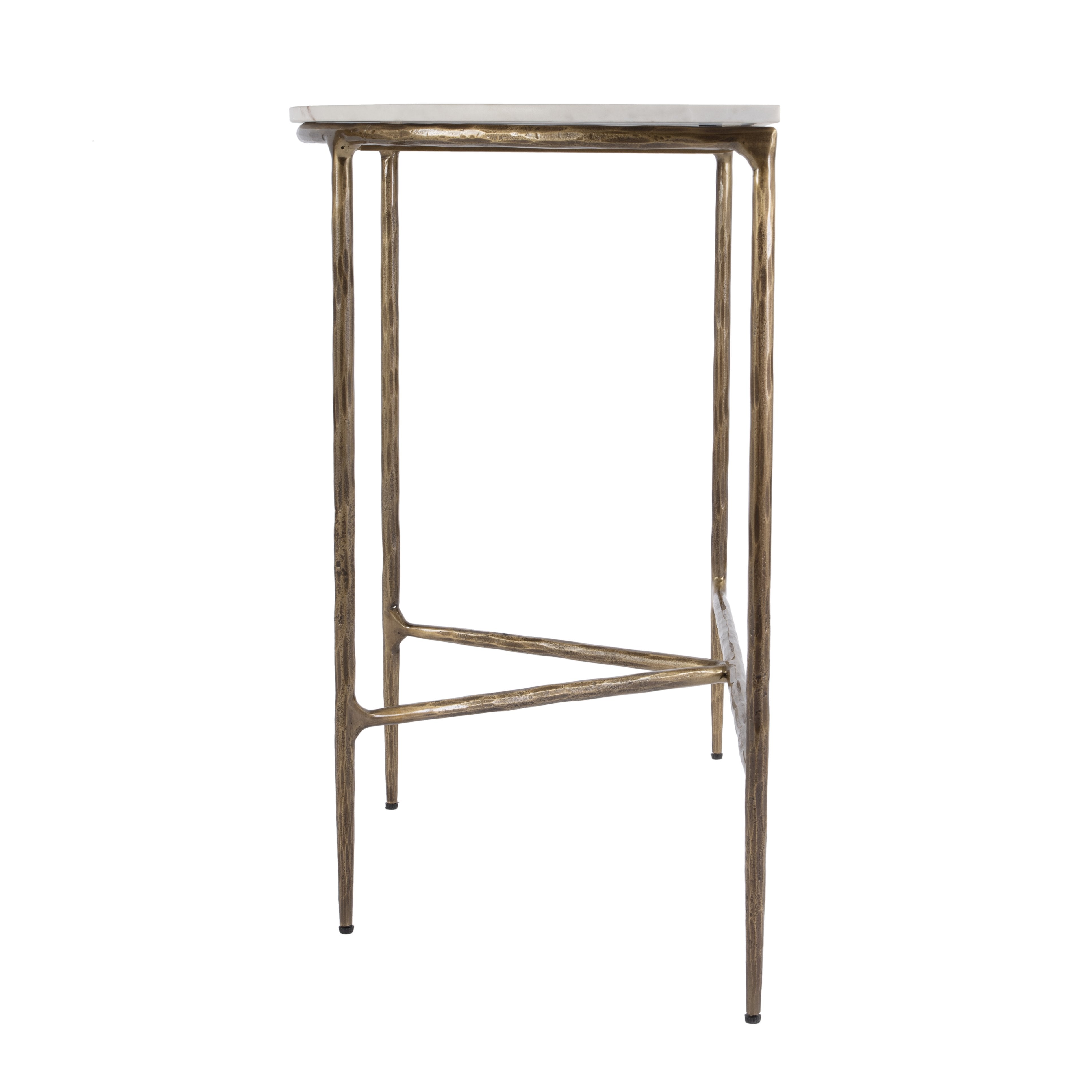 - Product Features (Construction Details): Construction Details: Polished marble fixed onto an antique brass finished base with adjustable leveler feet protection and hammered iron detailing on the legs