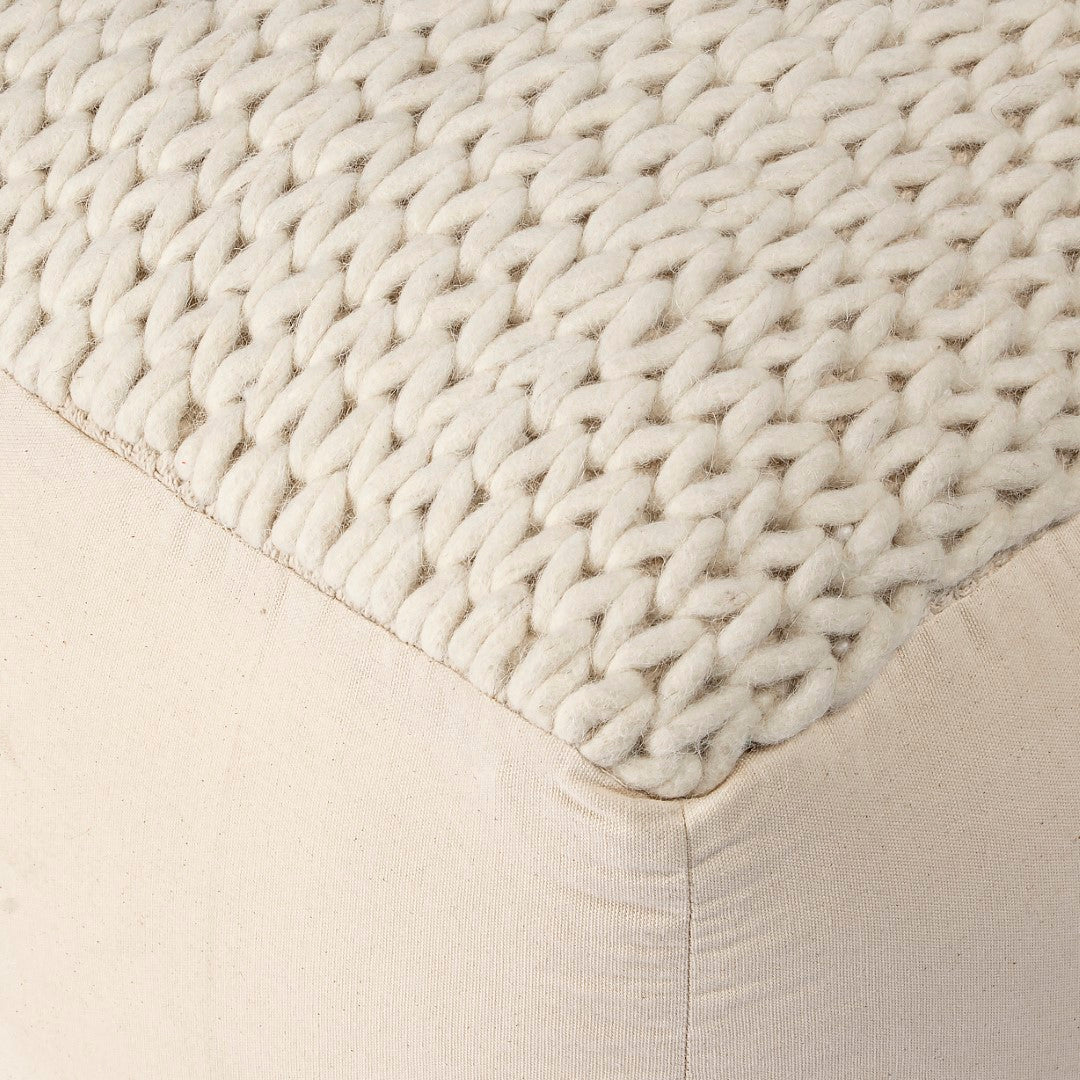 - Product Features 1: Cream colored cotton fabric with woven wool top.