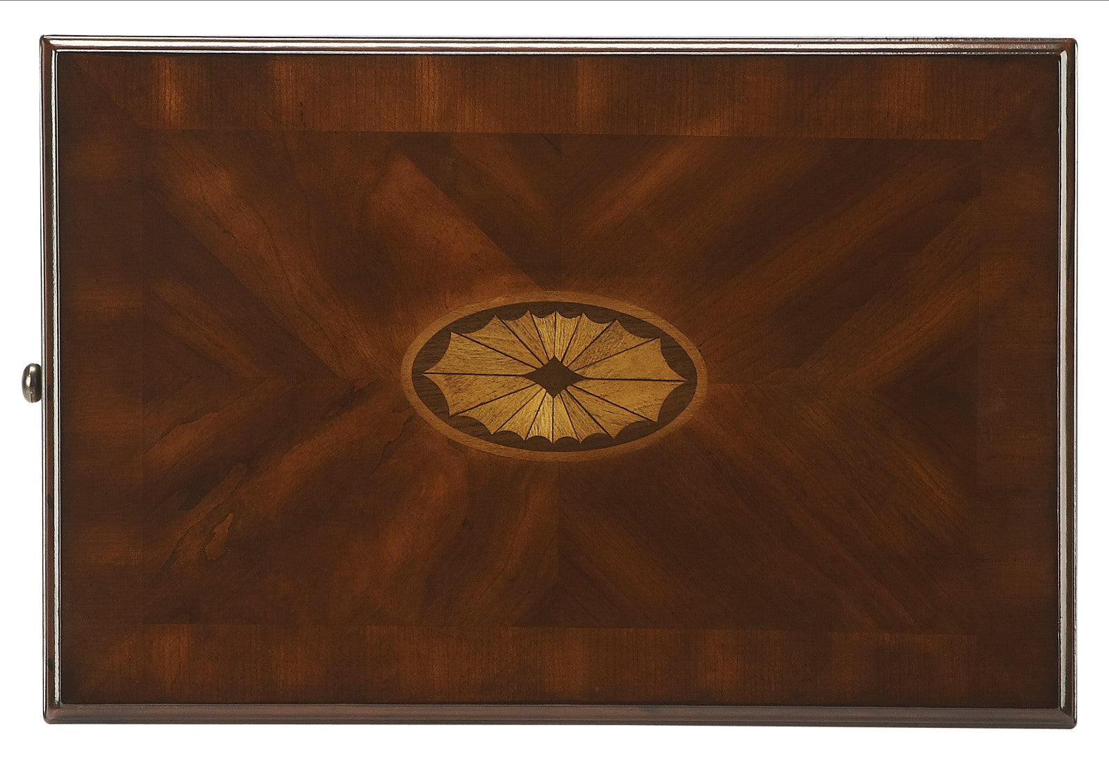 - Product Construction Features: Bookmatched cherry veneer with a linen fold center inlay of Maple and walnut Veneers all framed within a cross grain Cherry veneer Border