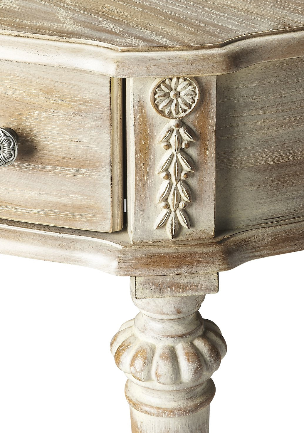 - One pull out drawer with antique bronze hardware on Wooden glide , full drawer extension and dimensions: Drawer dims 18.5"W x12.5"D x3.25"H