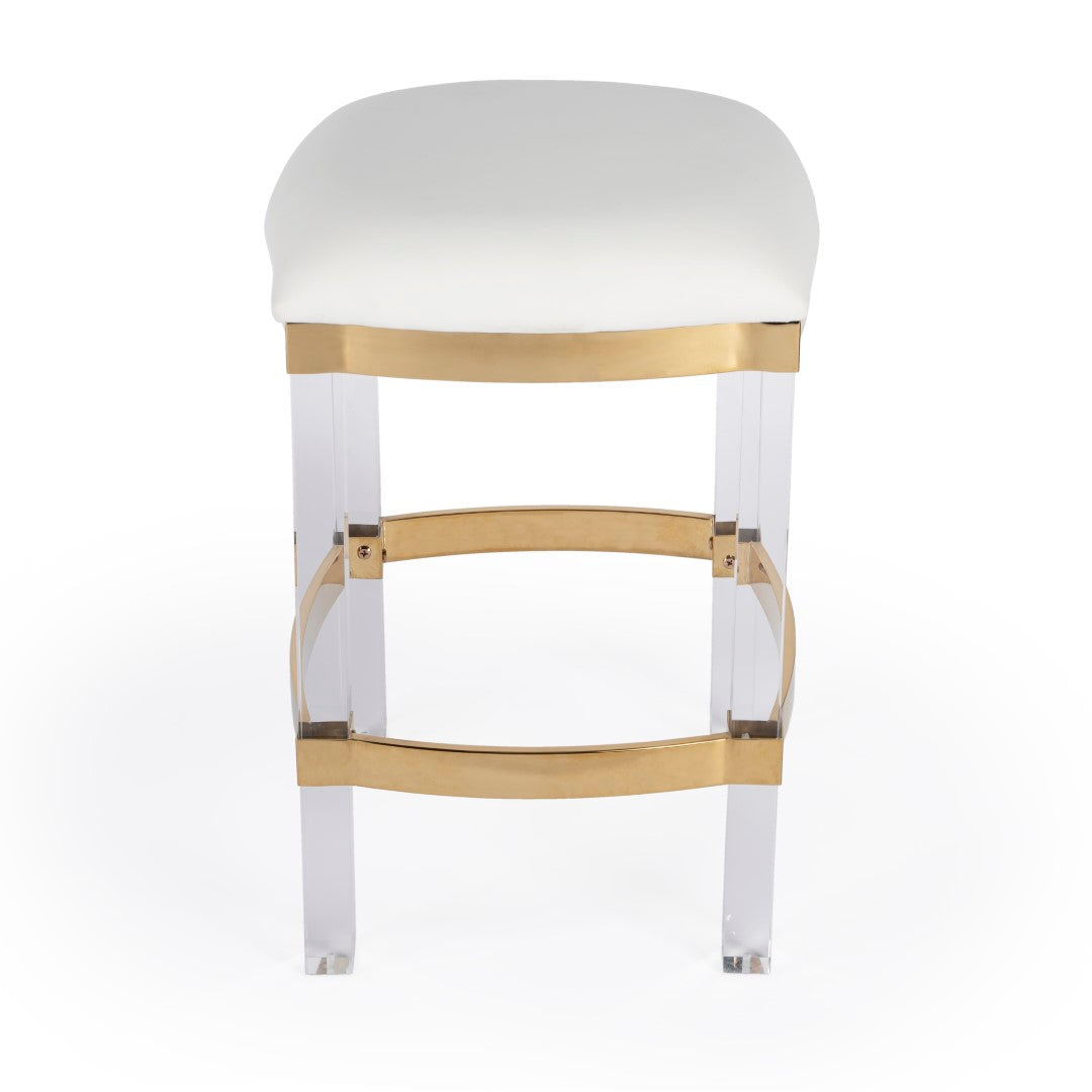 - Materials: Stainless Steel; High Polished Gold Finish, Acrylic, MDF, Fabric;White Faux Leather; Polyvinyl, Polyurethane Foam Core: Seat Height; 24"