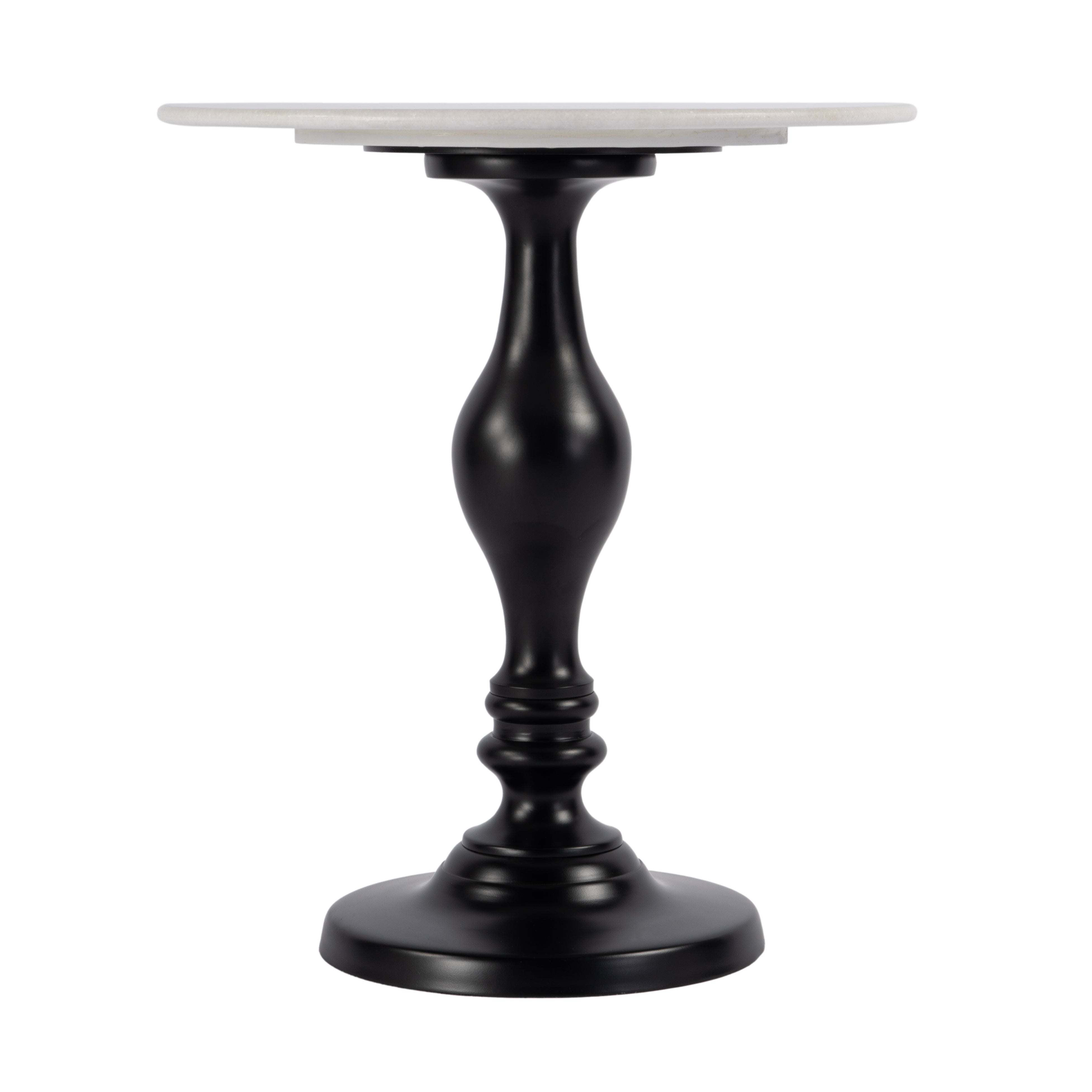 - Product Features (Construction Details): Construction Details: A sleek 20-inch diameter, 1/2" thick marble top that brings a touch of luxury and sophistication with its sturdy aluminum pedestal base providing excellent support and durability while maintaining a lightweight design. 22 inches in height, its robust construction ensures stability.