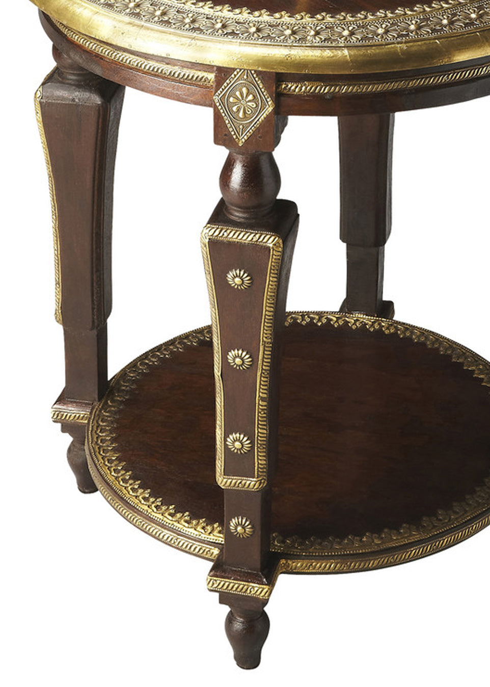 - Materials: Mango wood solids, brass foil
