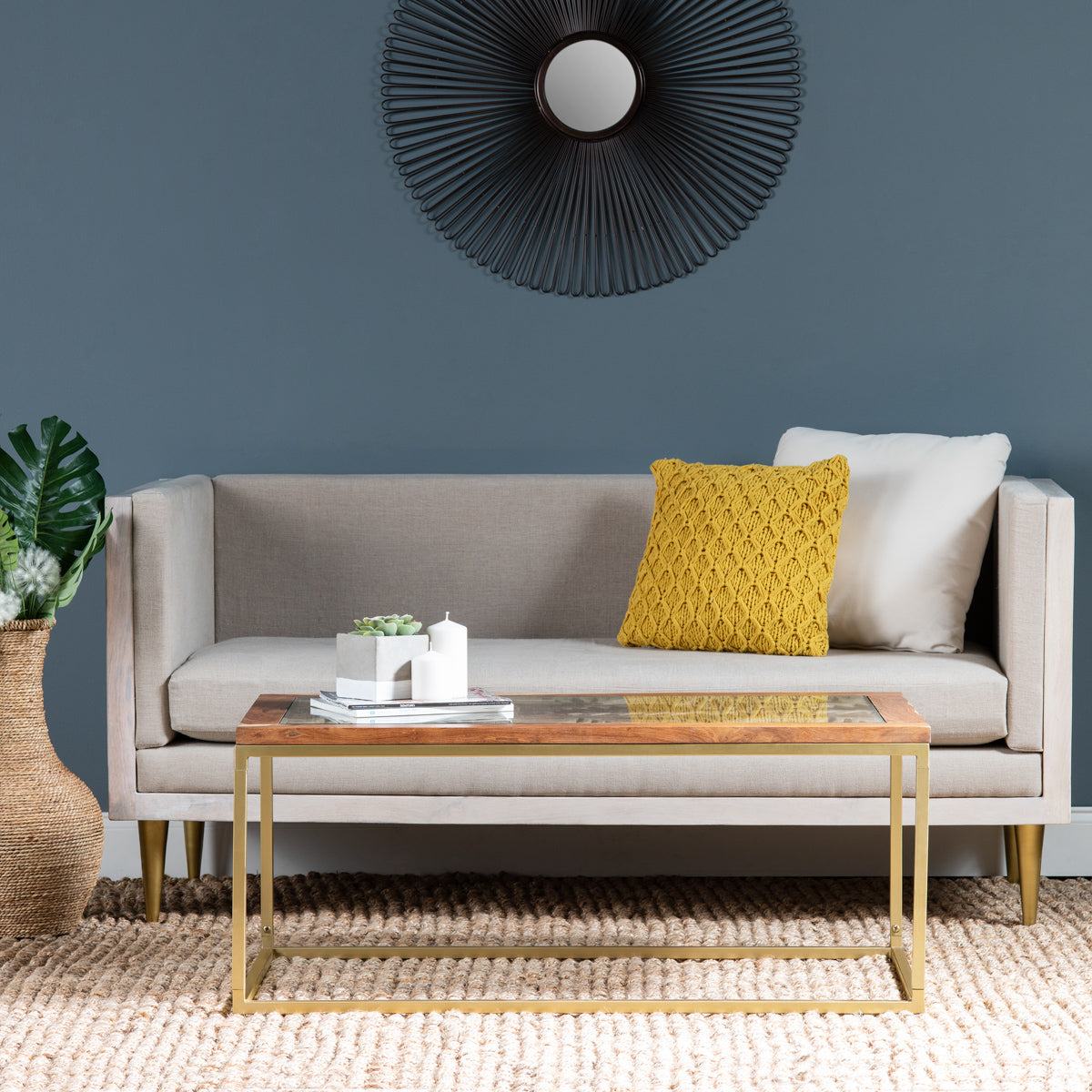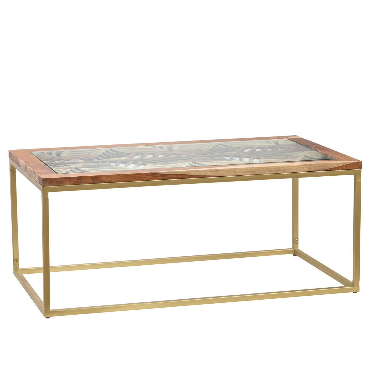 - Dimensions: EVFNR1179GD Adagio Rectangular Laser Cut Acacia and Iron Cocktail Table - 23.5w x 43.25d x 17.75h