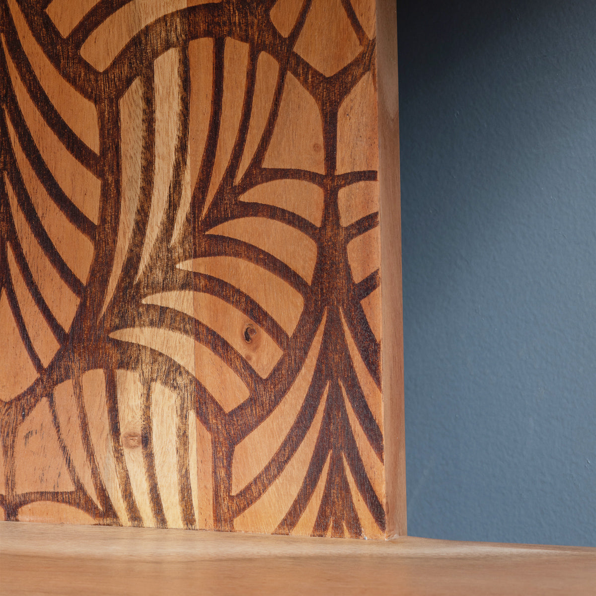 - Dimensions: EVFNR1182 Parikh 5-Shelf Laser Cut Iron and Acacia Bookshelf - 14w x 32.25d x 70.75h