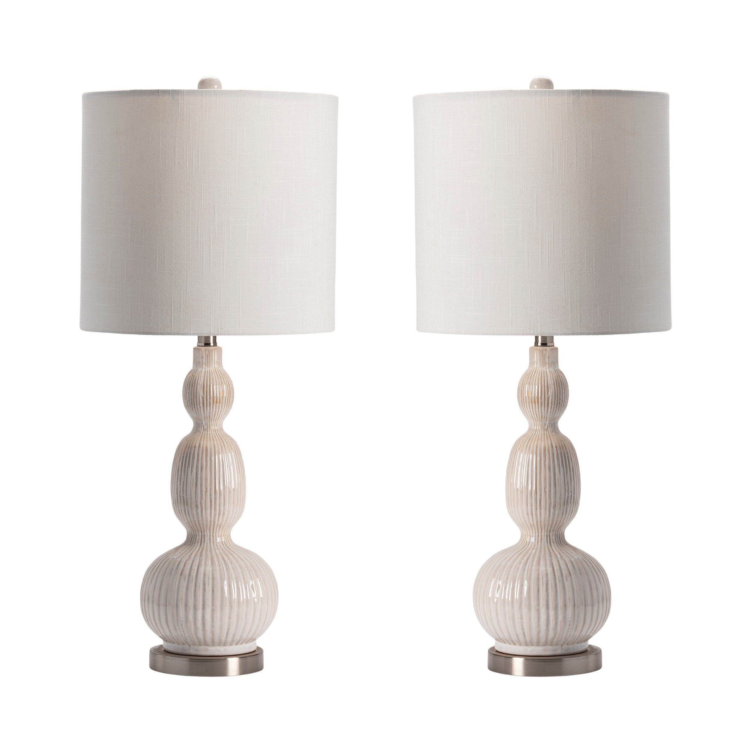 - Triple-gourd ceramic body features a sculptural silhouette with vertical ribbed texture for added depth