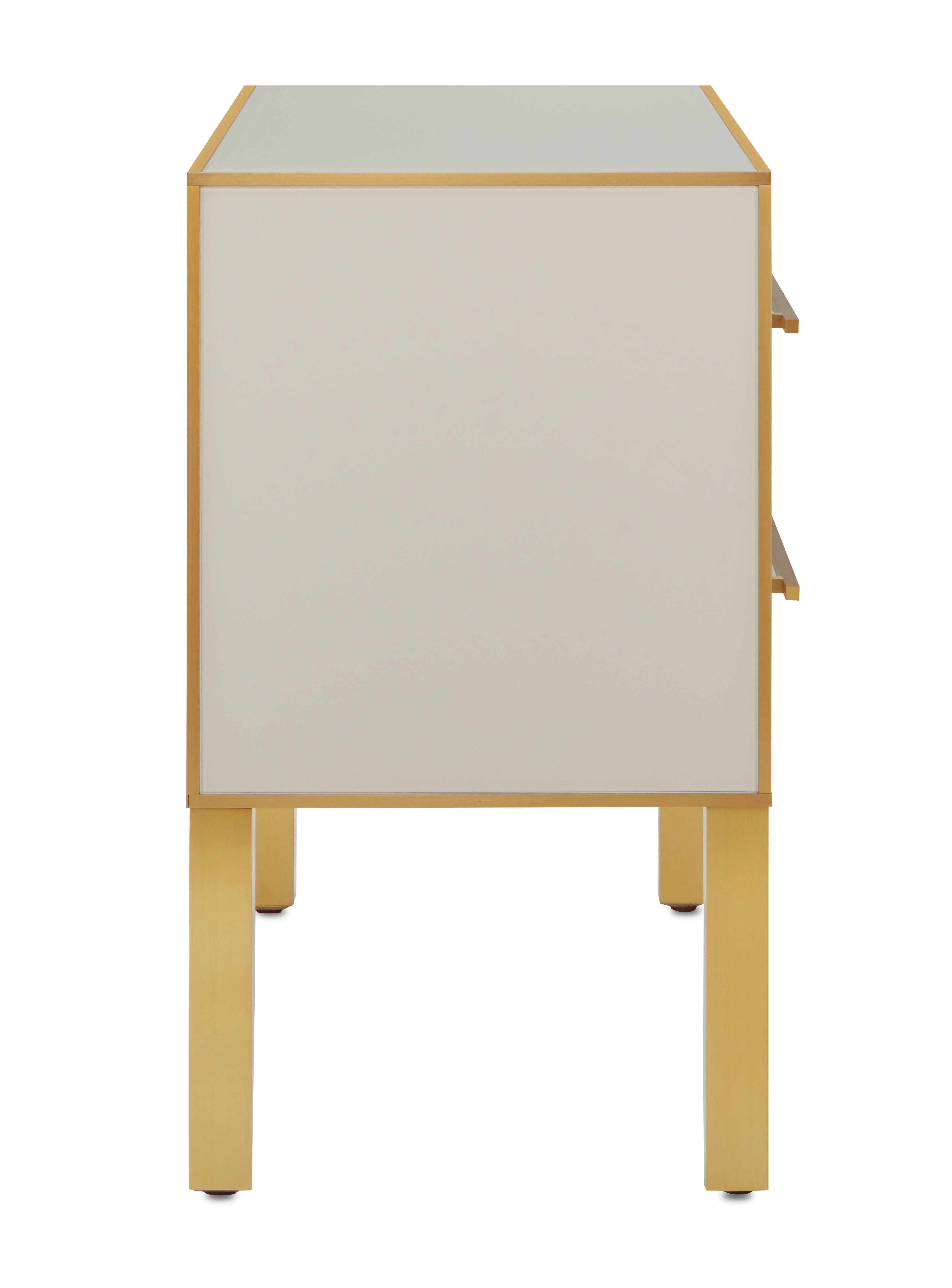 - Materials: Reverse Painted Glass/Brass/Solid Hardwood/Faux Suede