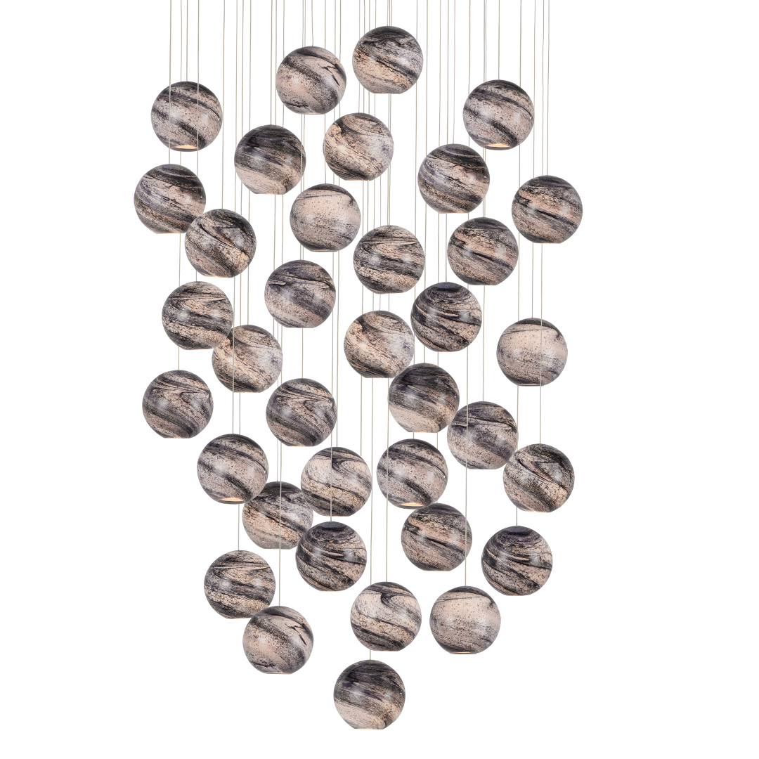 - All multi-drop fixtures arrive unassembled. A licensed electrician who is skilled with hanging fixture assembly and installation should be consulted to plan and perform the installation. The thin aircraft cable used for suspending shades arrives in a 10' coil. Cable variances are determined by you and the installer. Installer will cut cable lengths, link shades to cables, and install fixtures.
