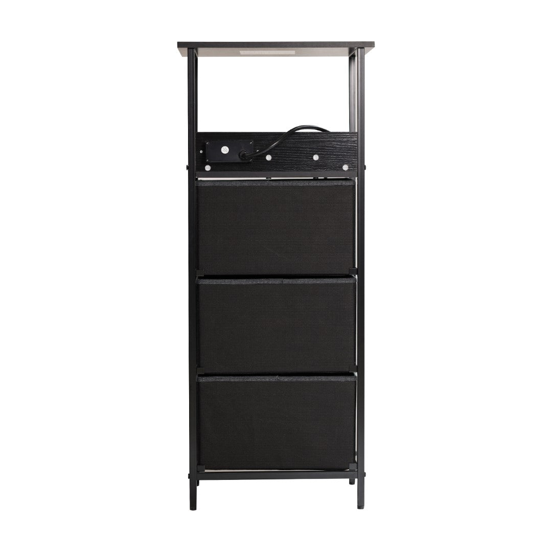 - Space-Saving Design with Three Fabric Drawers and Wood Handles