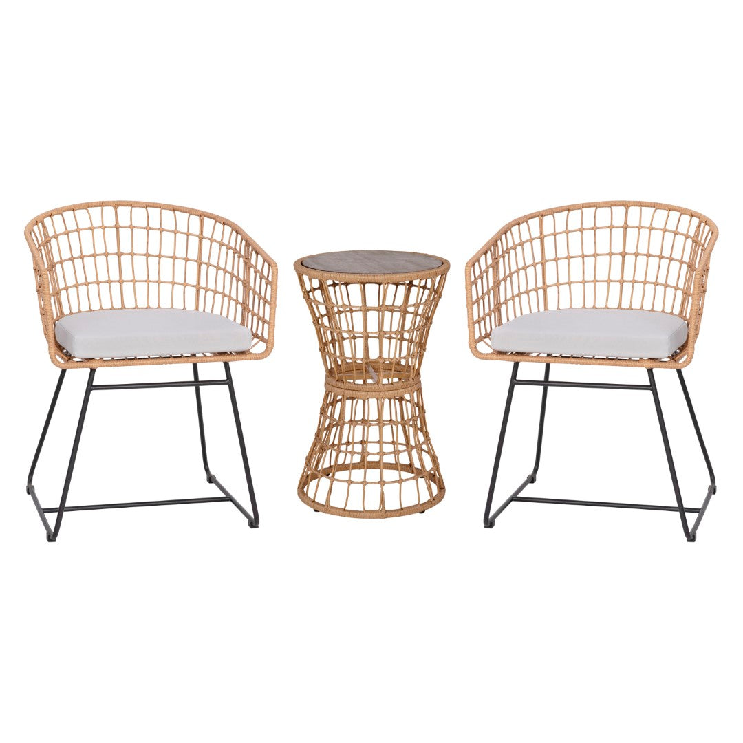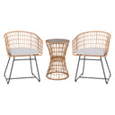 - Modern 3 Piece Boho Style Indoor/Outdoor Rattan Rope Patio Bistro Set with Table and Cushions