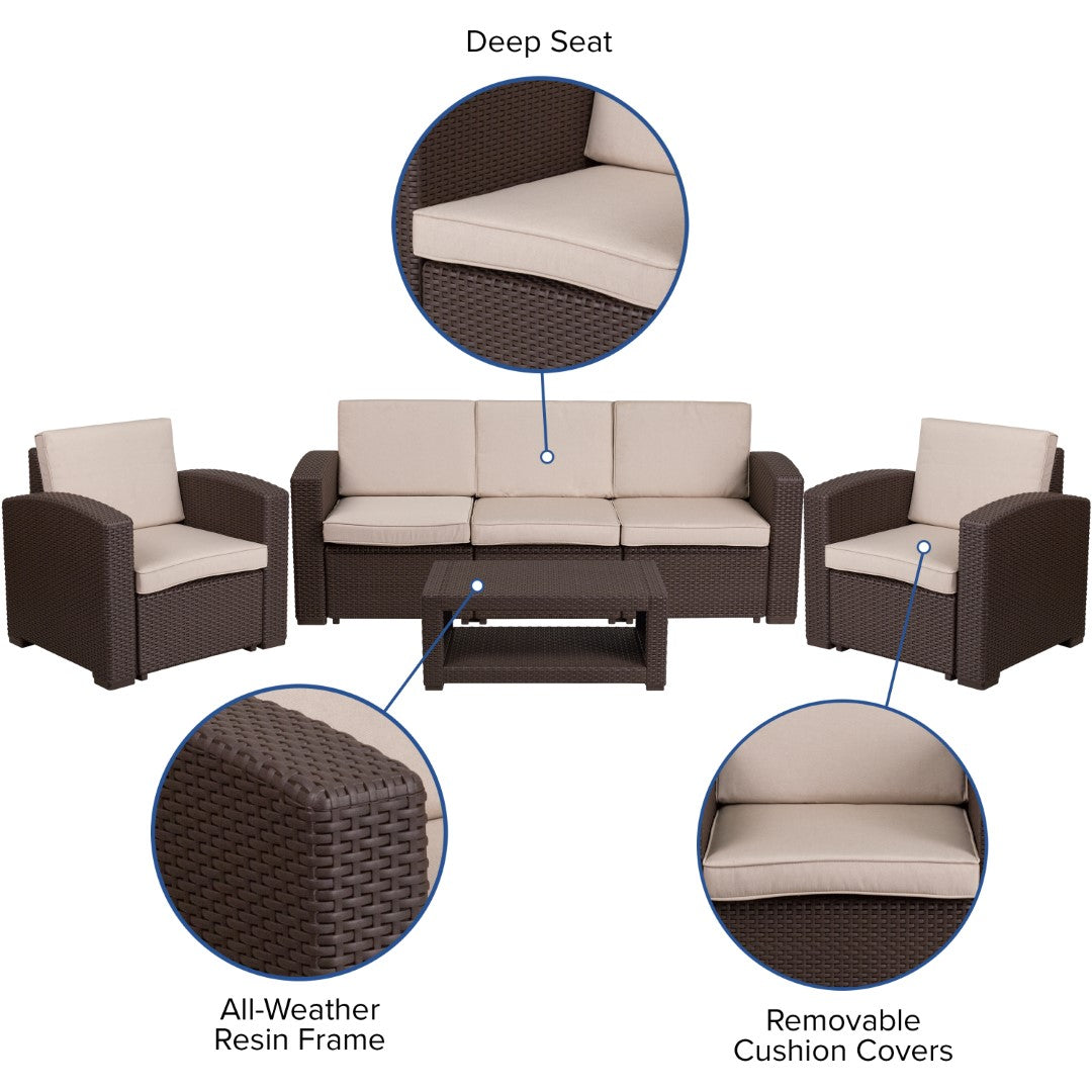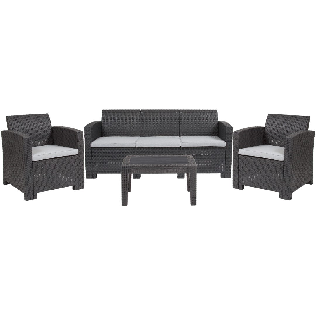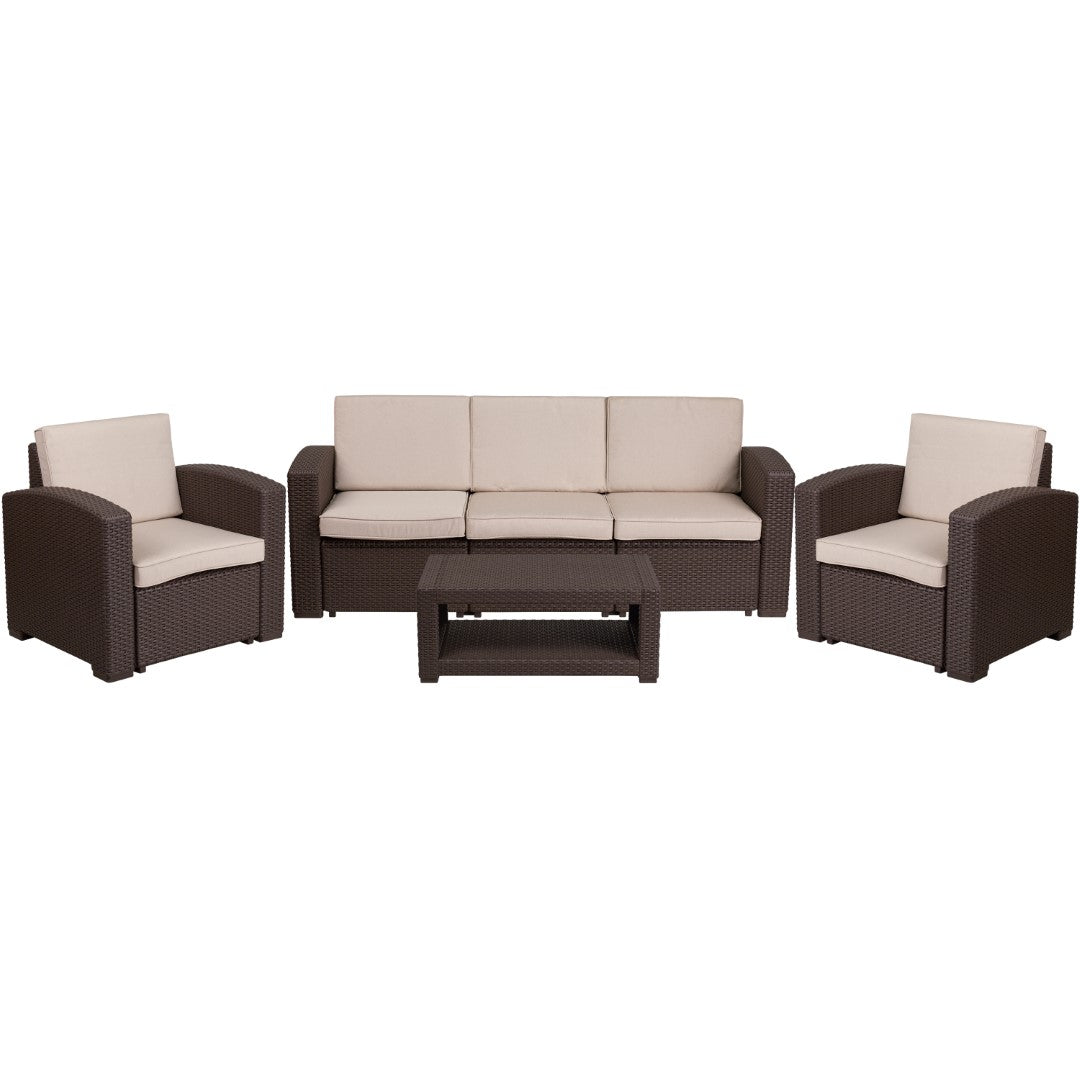 - Chair (2): 26.75W X 27D X 30H; Sofa: 67.5W X 27D X 30H; Coffee Table: 27.75W X 19.75D X 15H