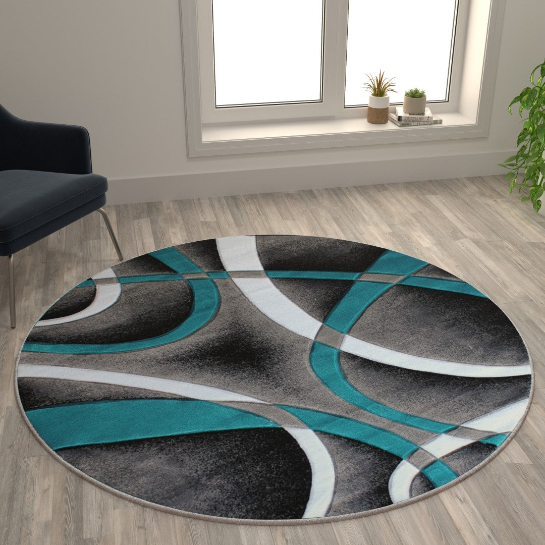 - Modern 5' x 5' Round Plush Abstract Area Rug for Indoor Use