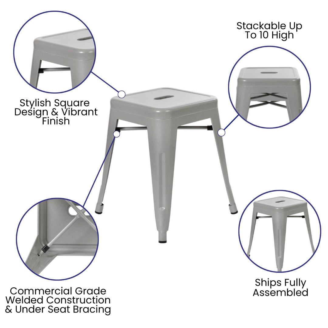 - Lightweight and stackable up to 10 stools high for easy storage and transport