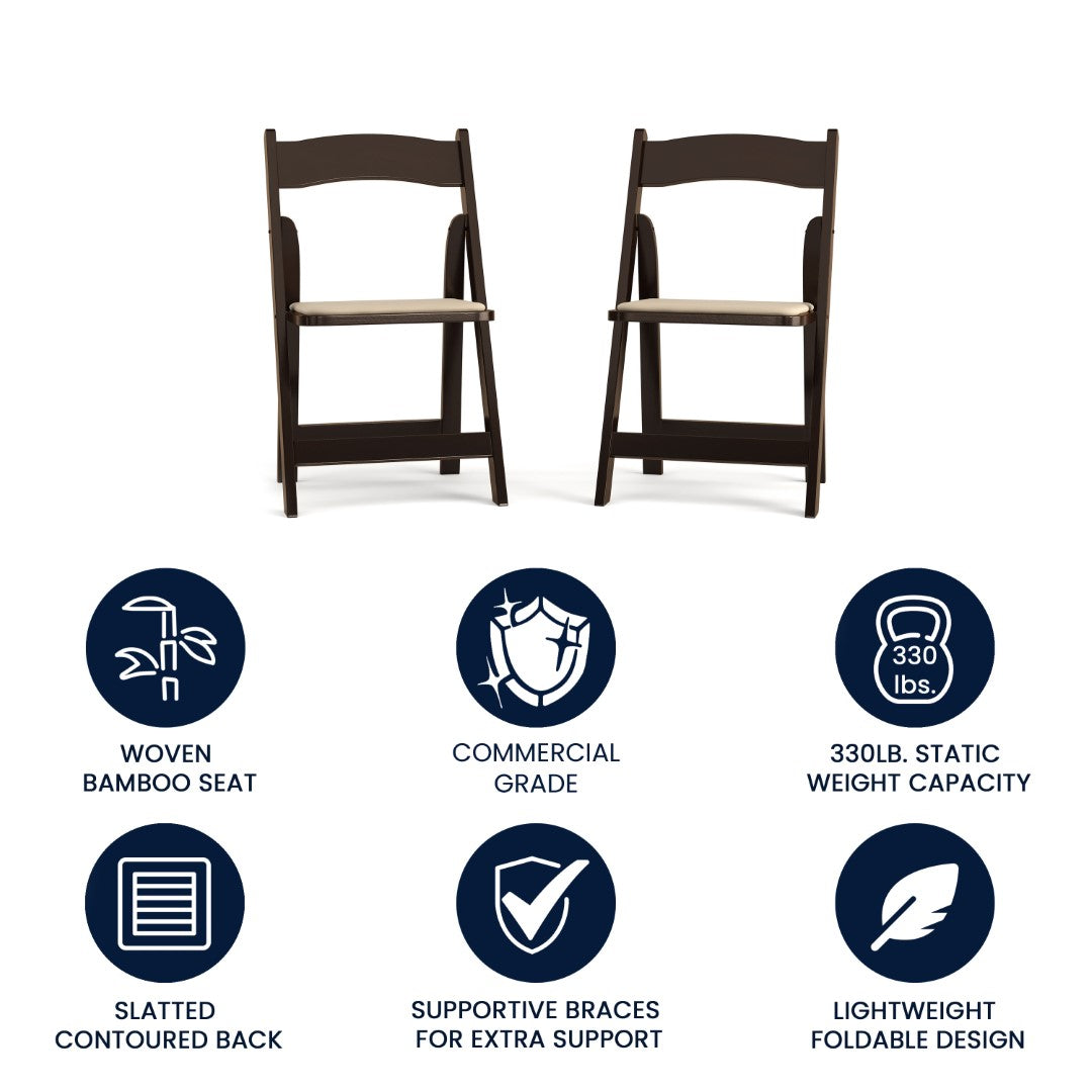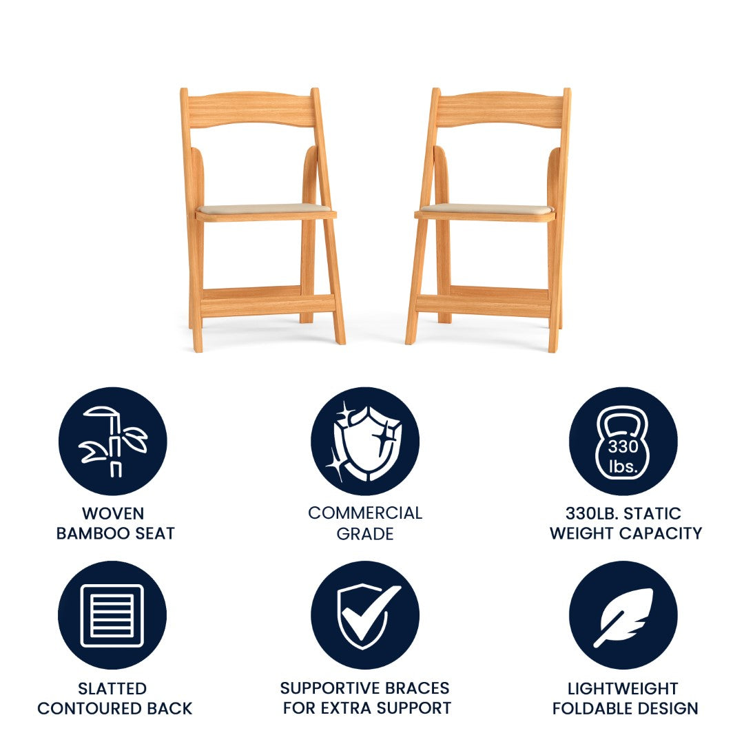 - Set of 2 Wood Folding Chairs with Open Back Design for Indoor or Outdoor Events