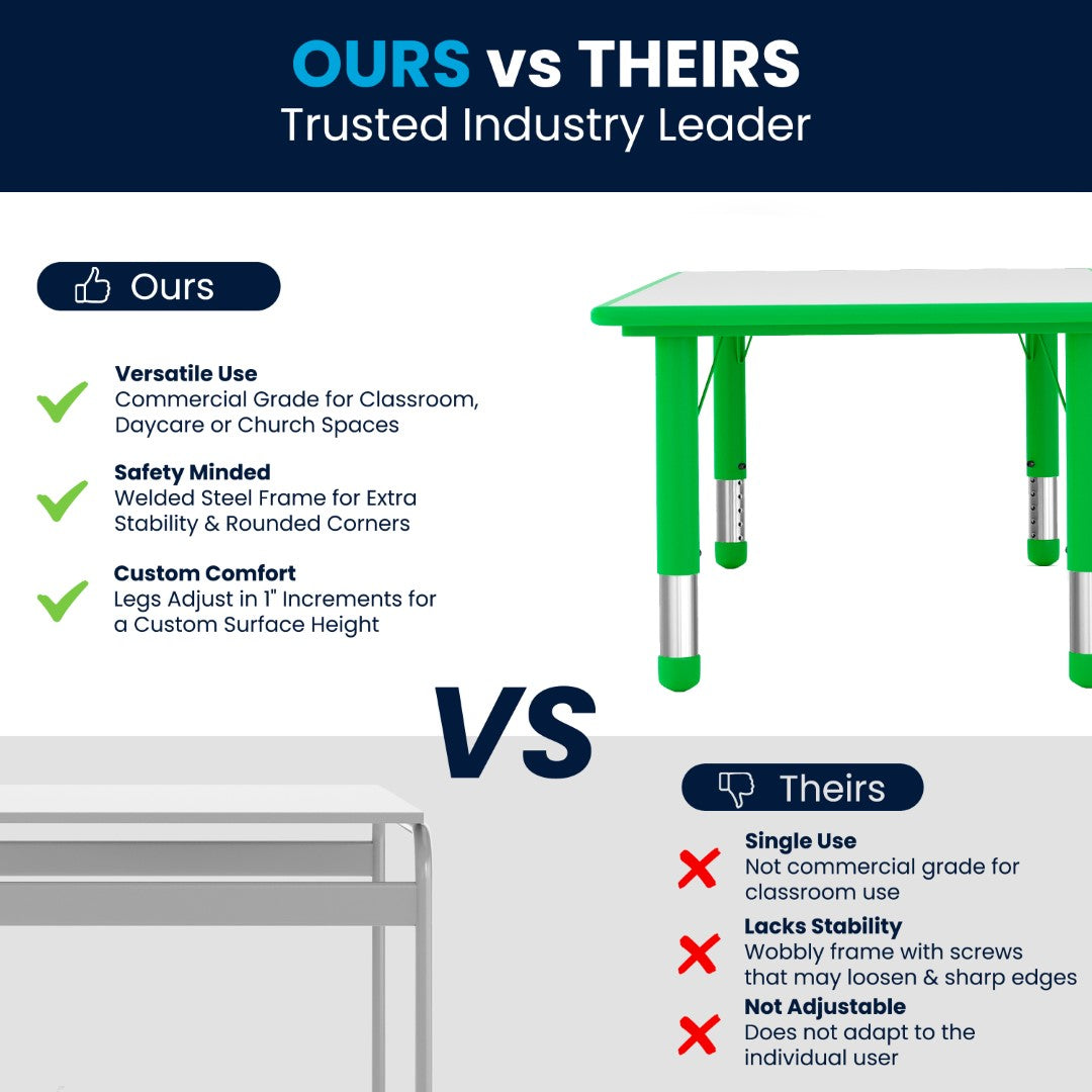 - 1" Thick Smooth Laminate Top with Plastic Safety Rounded Corners