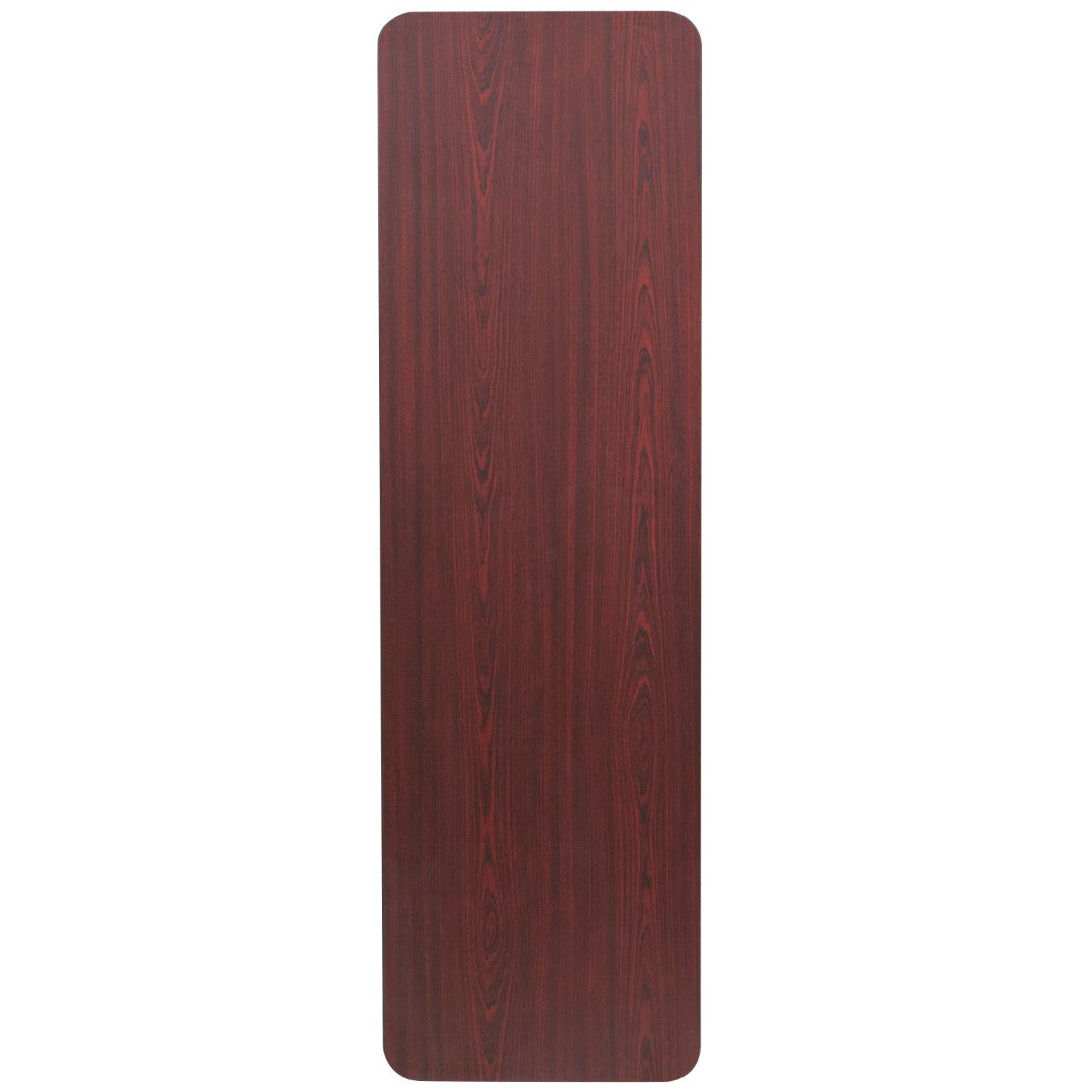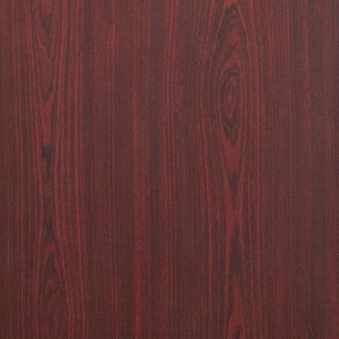 - Tabletop: .75-inch thick Melamine Laminate Mahogany Top