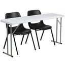 - Set of 2 Black Plastic Stack Chairs: 21W x 23D x 32.125H