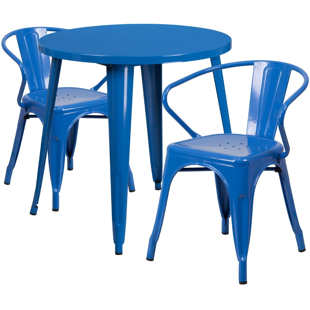 - Metal Cafe Table with a Top Size of 30 Round and 1.25 Thick Edge Top