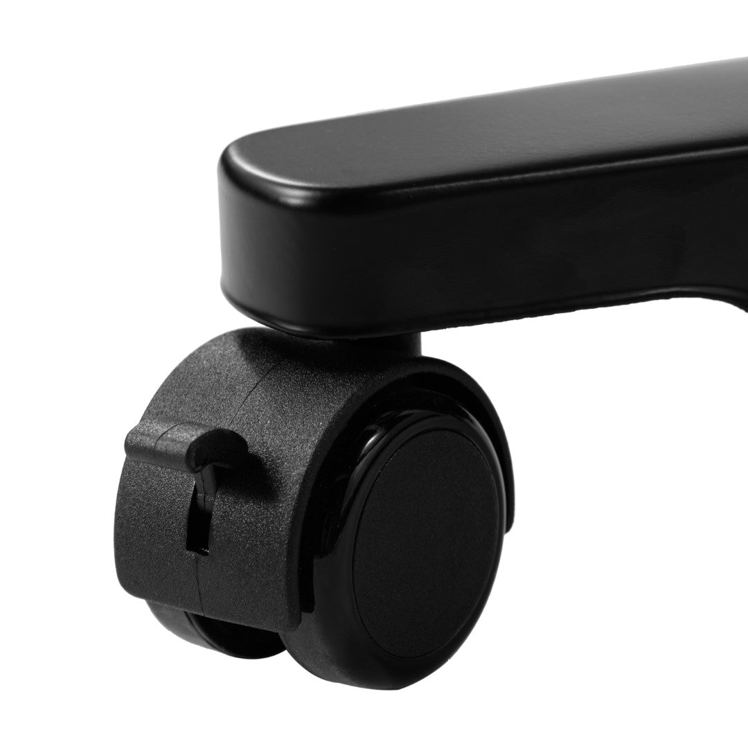 - Four rolling casters for effortless mobility with locking feature