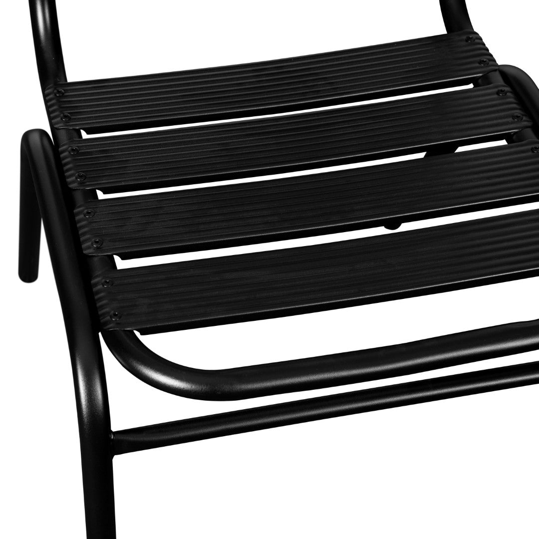 - Armless Black Frame with Triple Slat Back for a modern look