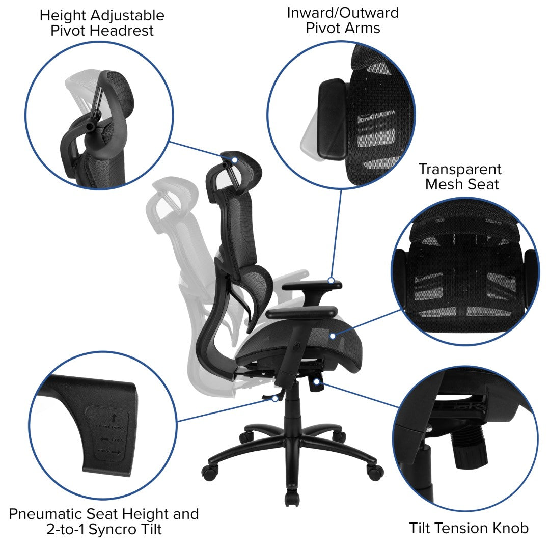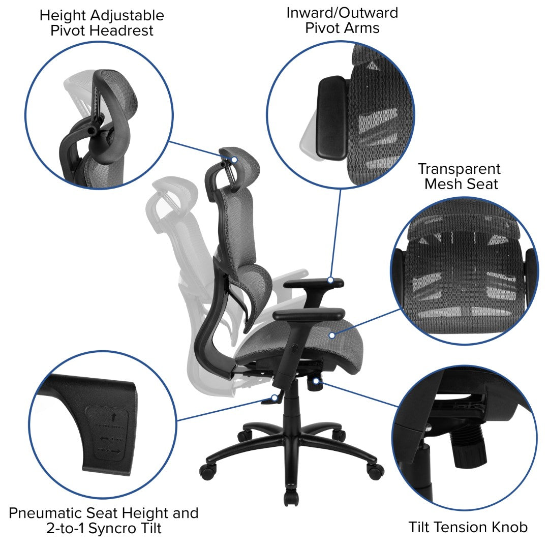 - Contemporary Executive Office Chair with Pivot and Height Adjustable Headrest