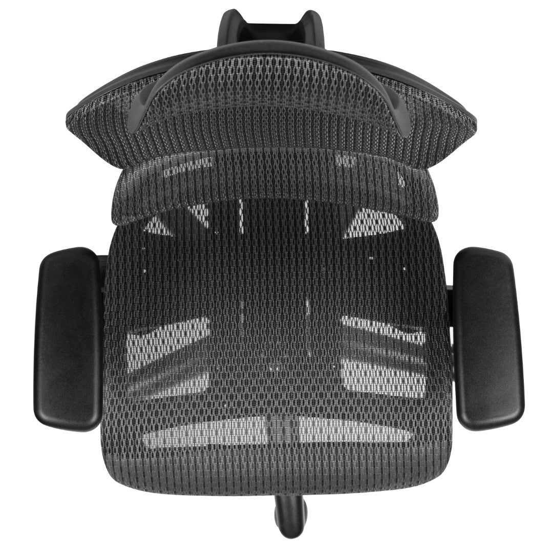 - Tilt Tension Adjustment Knob adjusts the chair's backward tilt resistance