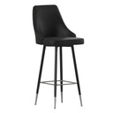 Elevate your commercial space with this sophisticated set of 2 Commercial LeatherSoft Bar Height Stools. Crafted for durability and style, these stools feature solid metal frames with sleek chrome accents on the feet and footrests. The modern design is complemented by black LeatherSoft upholstered bucket-style backs and seats, providing a luxurious and contemporary look.