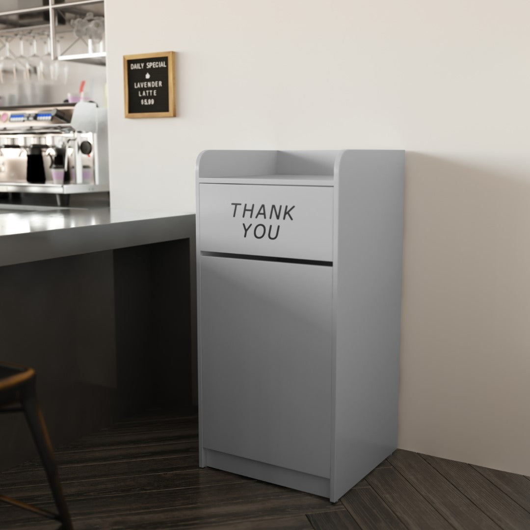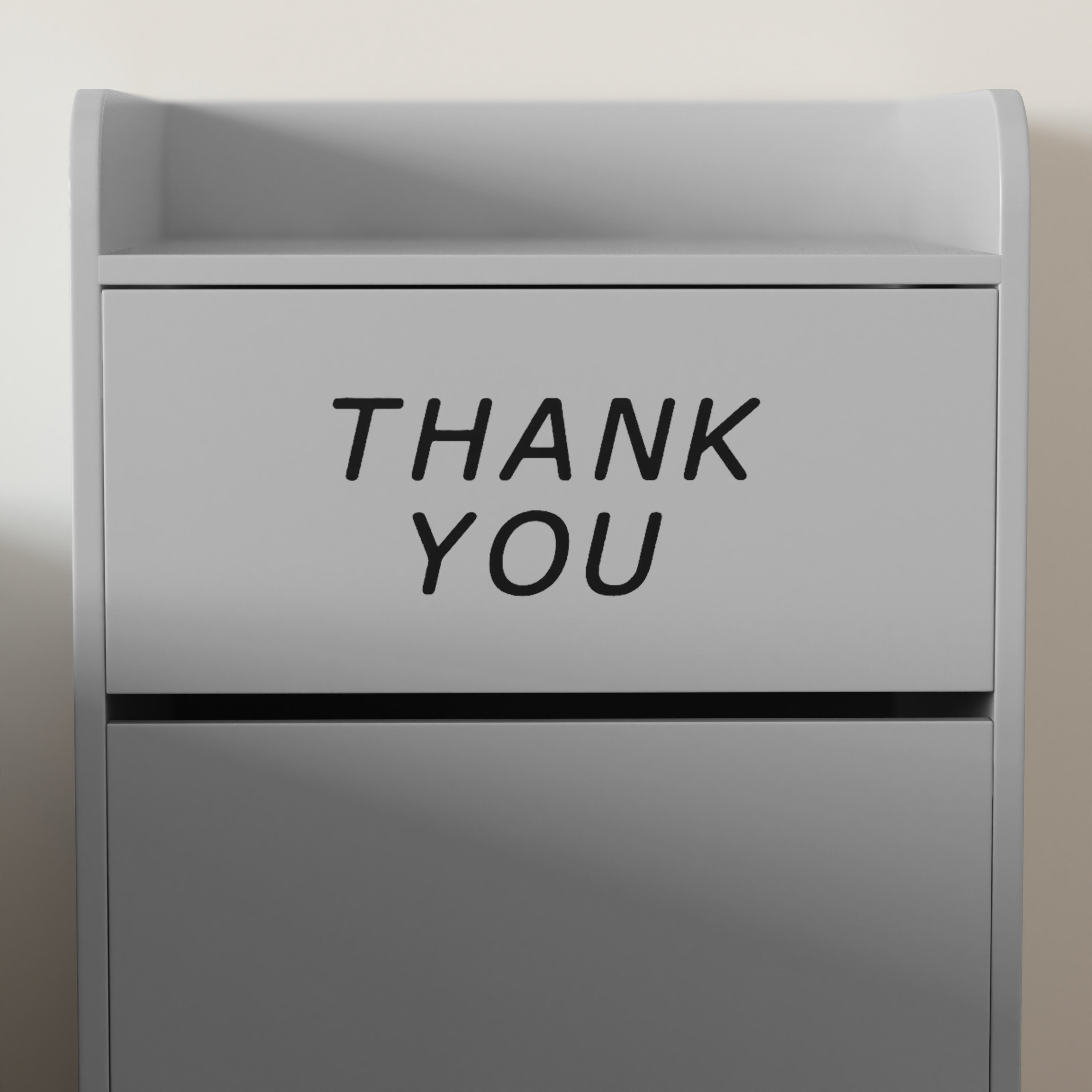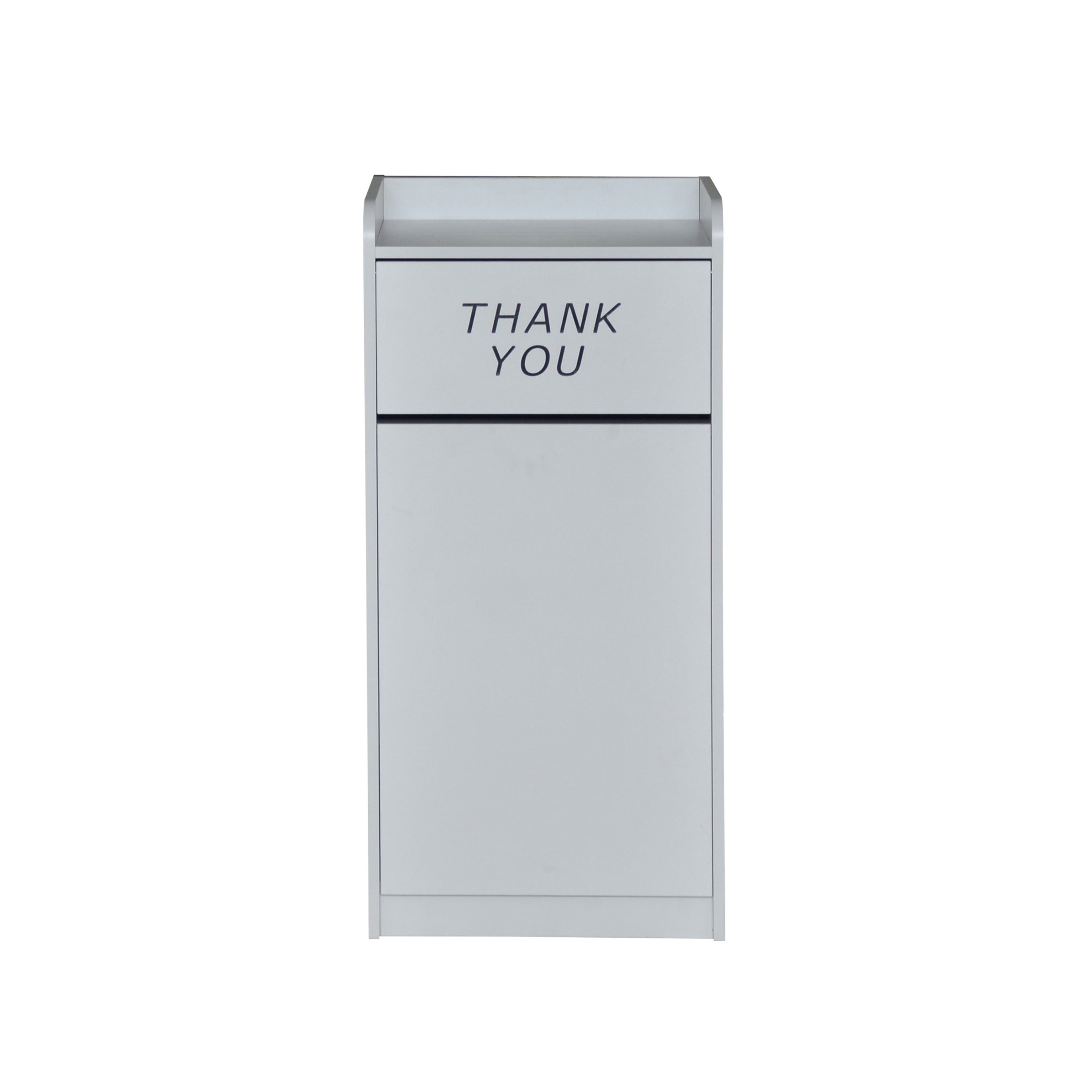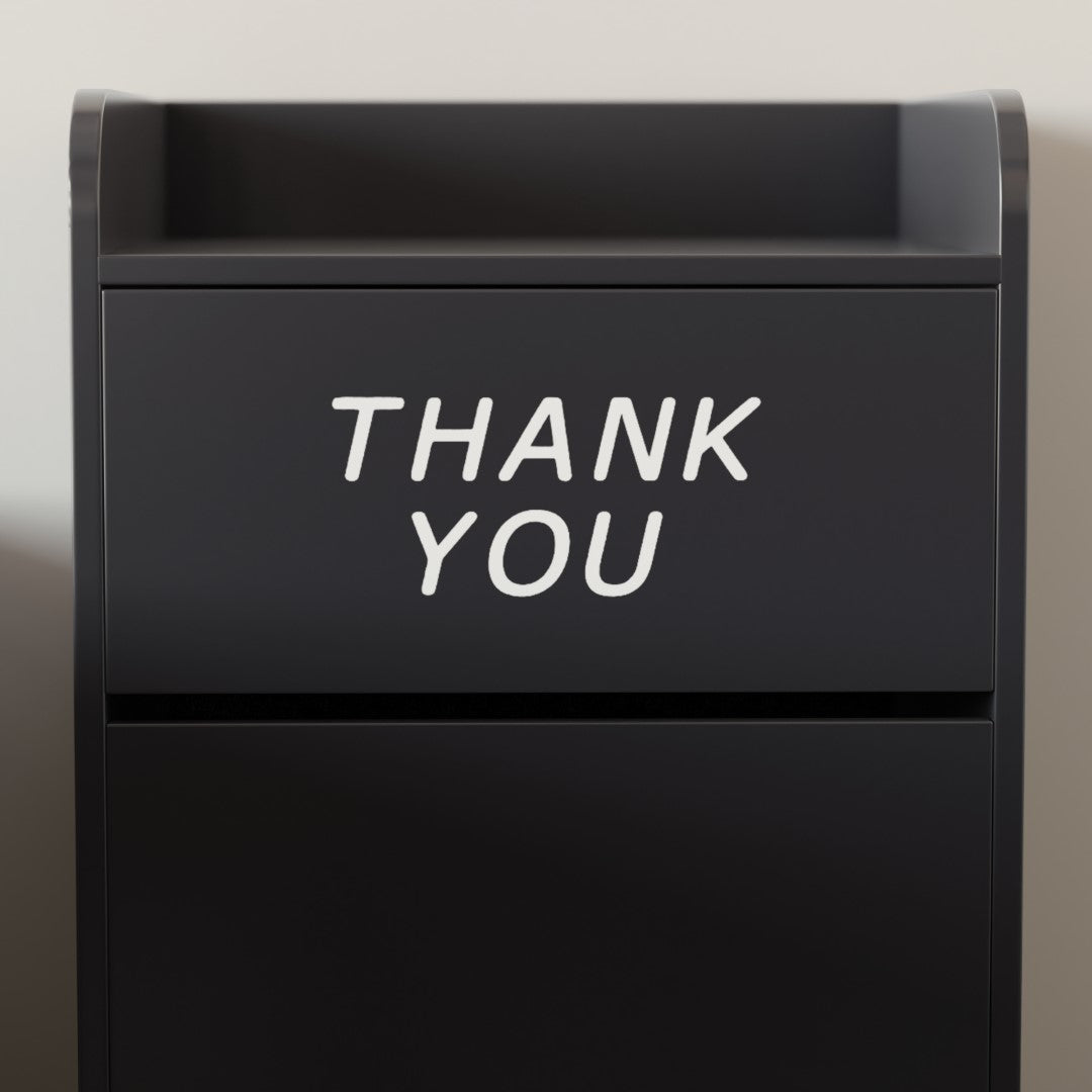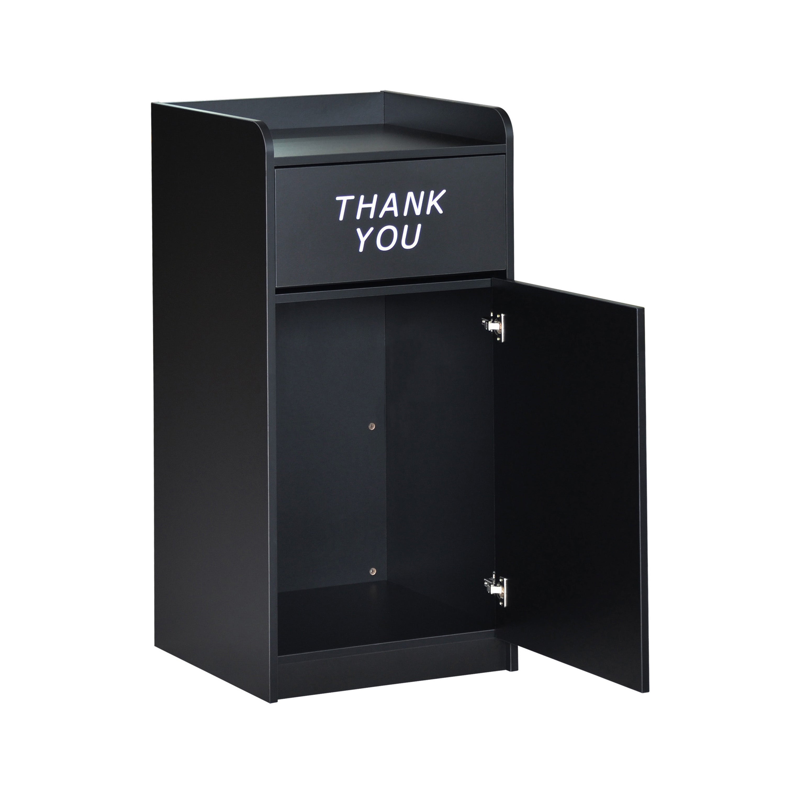 - Wood Tray Top Receptacle with Engraved Thank You Text into Swing Door