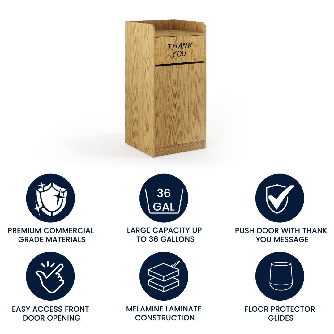 - Holds up to 36 Gallons, Accepts 36 Gallon Plastic Liner (Not Included)