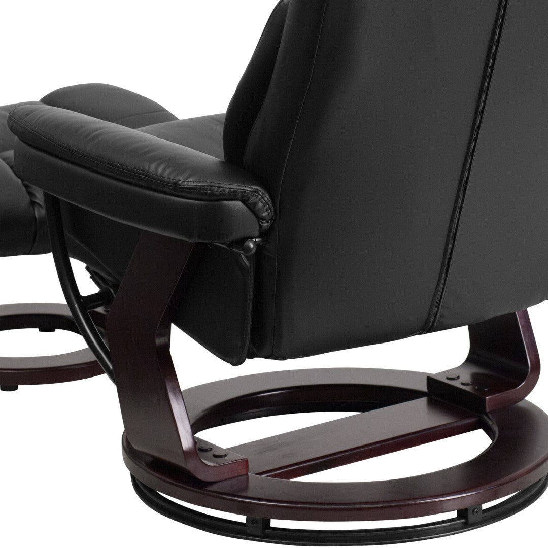 - Recliner Chair has Ball-Bearing Swiveling Mahogany Wood Base with Floor Protector Glides