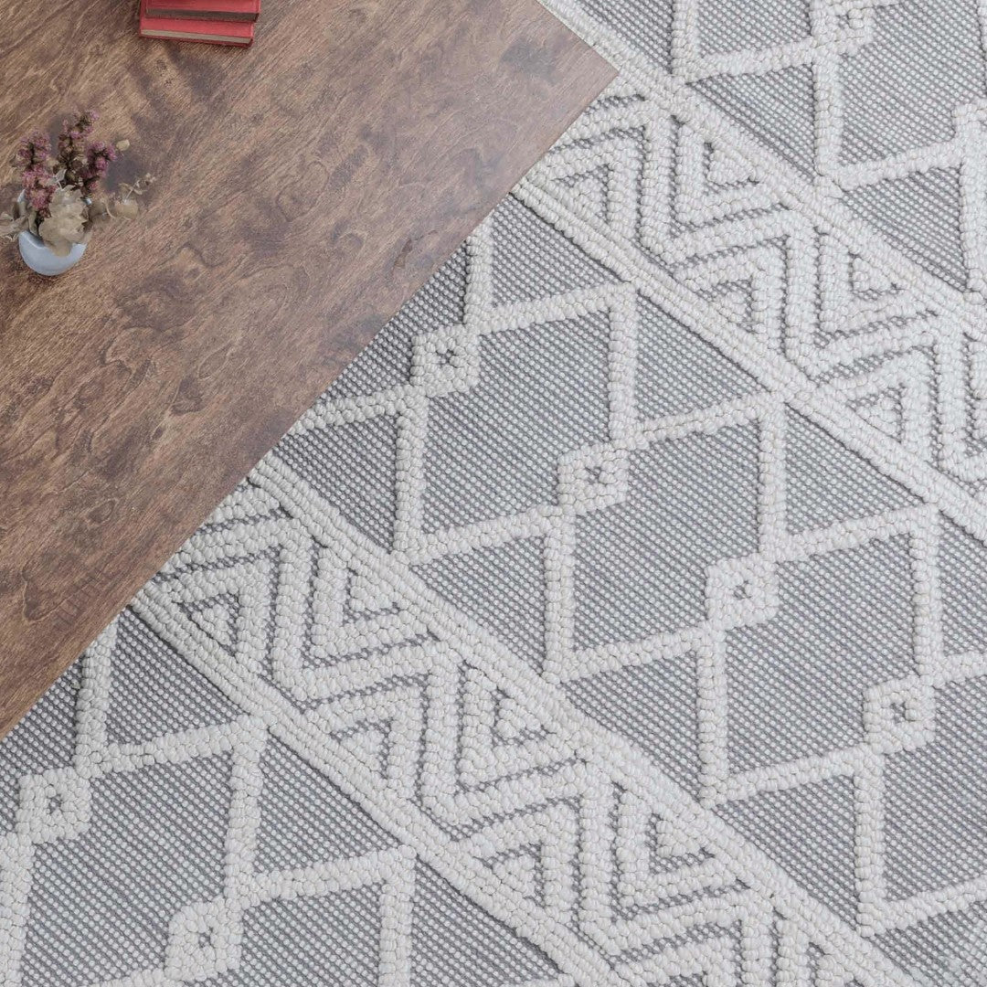 - Raised Ivory Diamond Pattern on a Solid Gray Background adds an up-market look