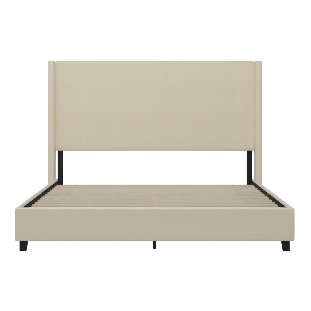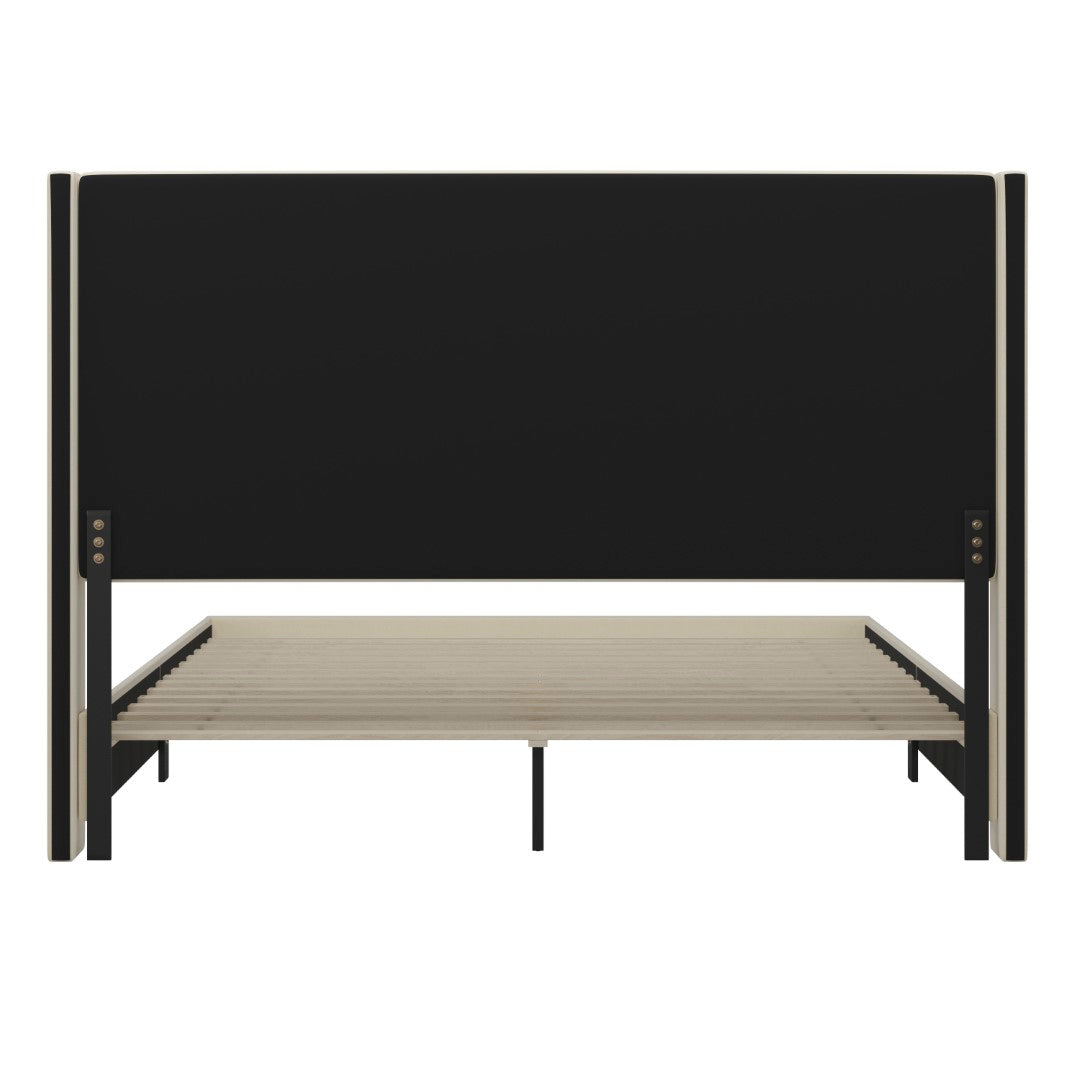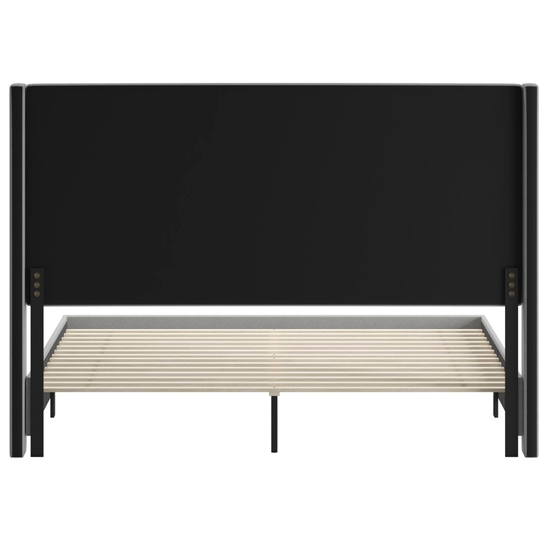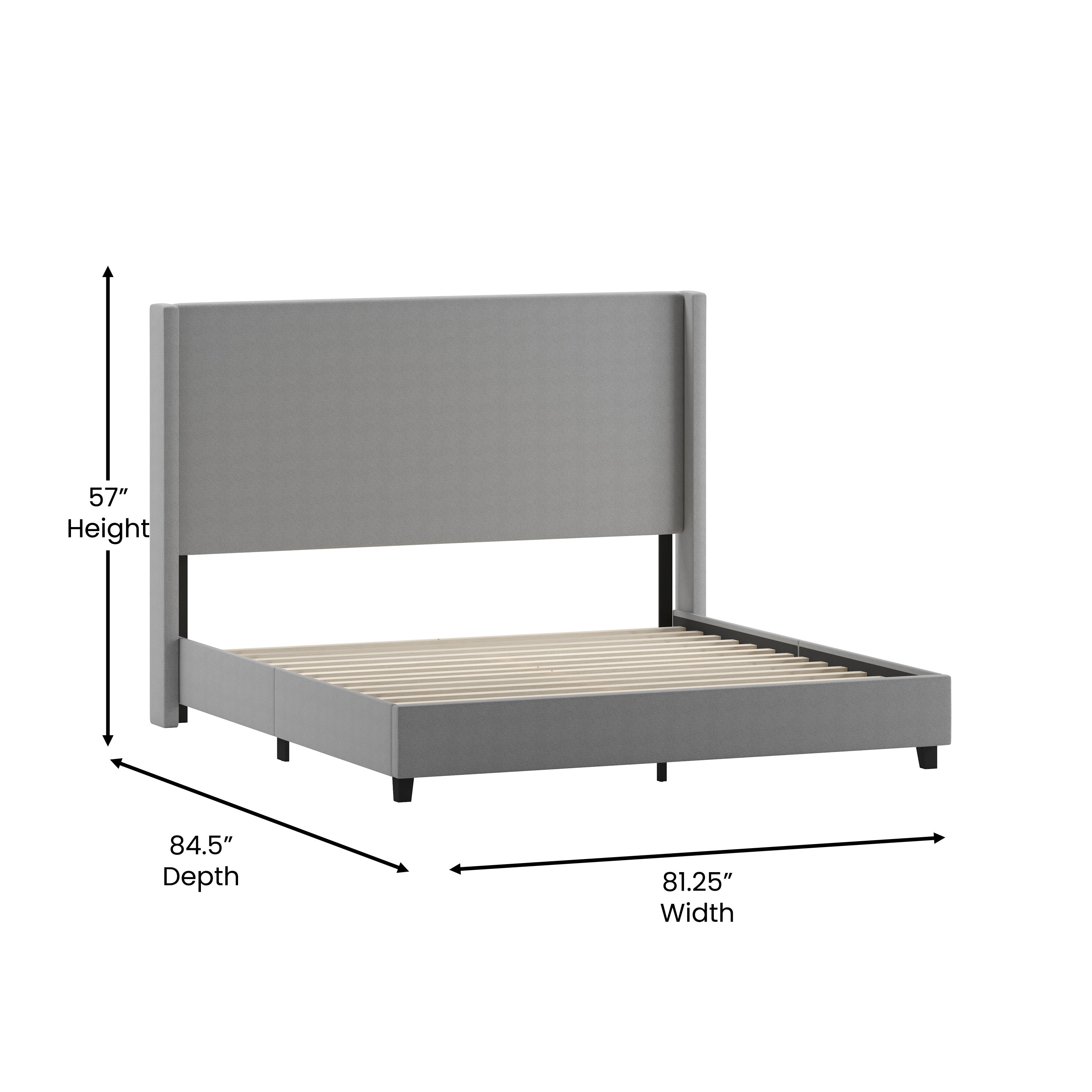 - Modern Upholstered Platform Bed with Wingback Headboard, King
