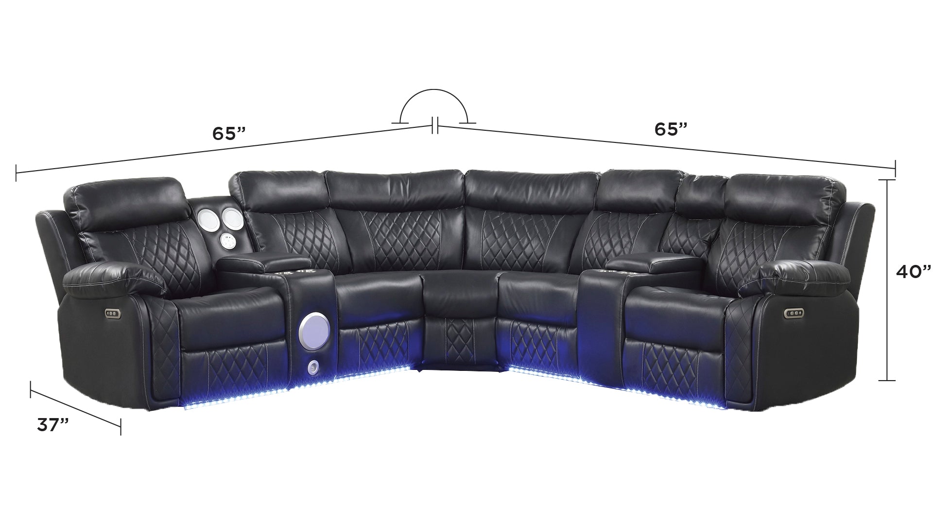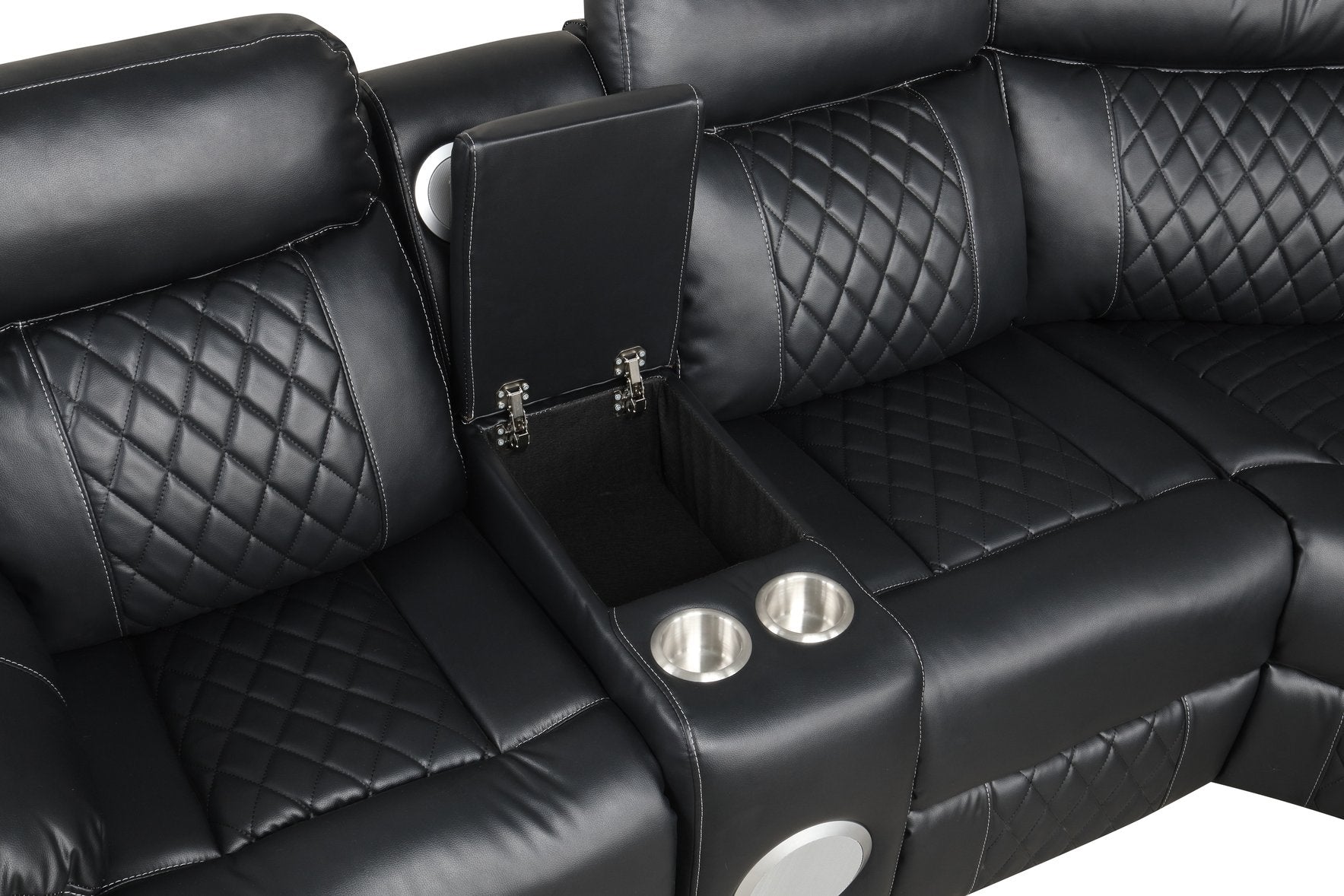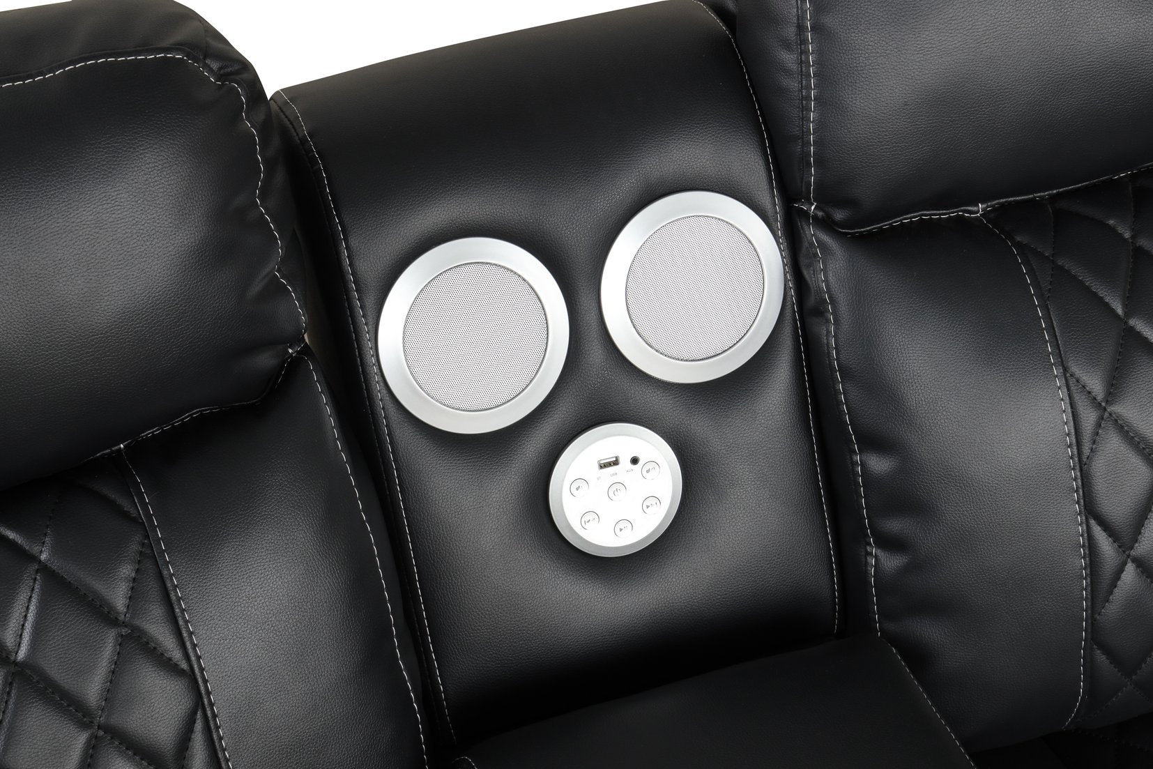 Elevate your living room with a contemporary power-reclining sectional that combines style, technology, and everyday convenience. Designed for modern entertainment and relaxation, this sectional pairs plush faux leather seating with integrated tech features—so you can stream music through built-in Bluetooth speakers, charge devices via USB, and set the mood with subtle LED lighting—while dual power recliners and a central console keep comfort and convenience within reach.