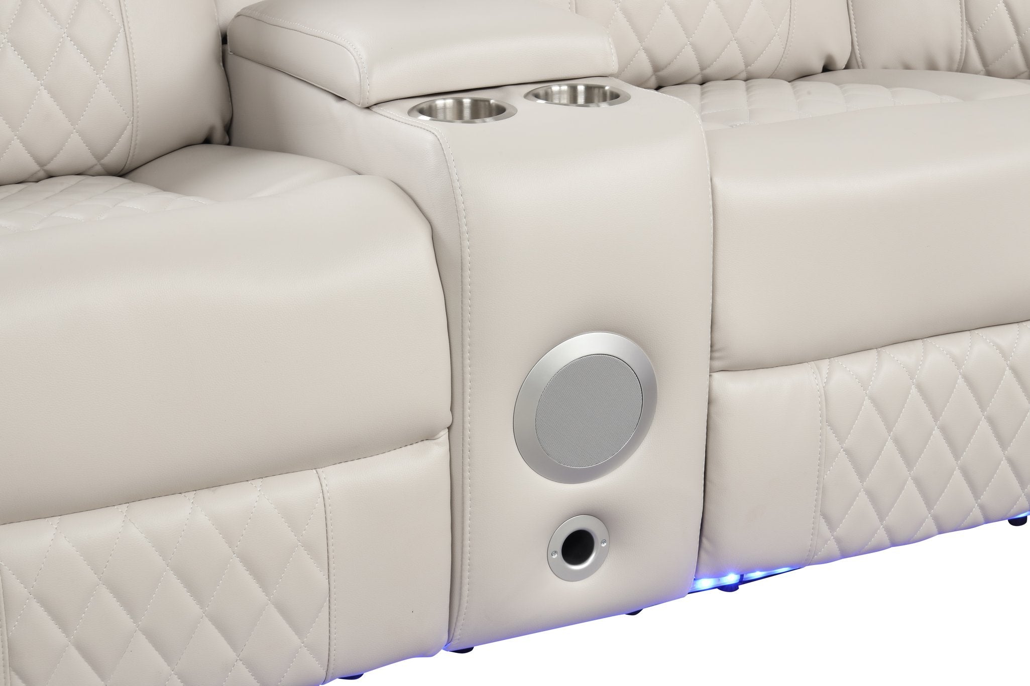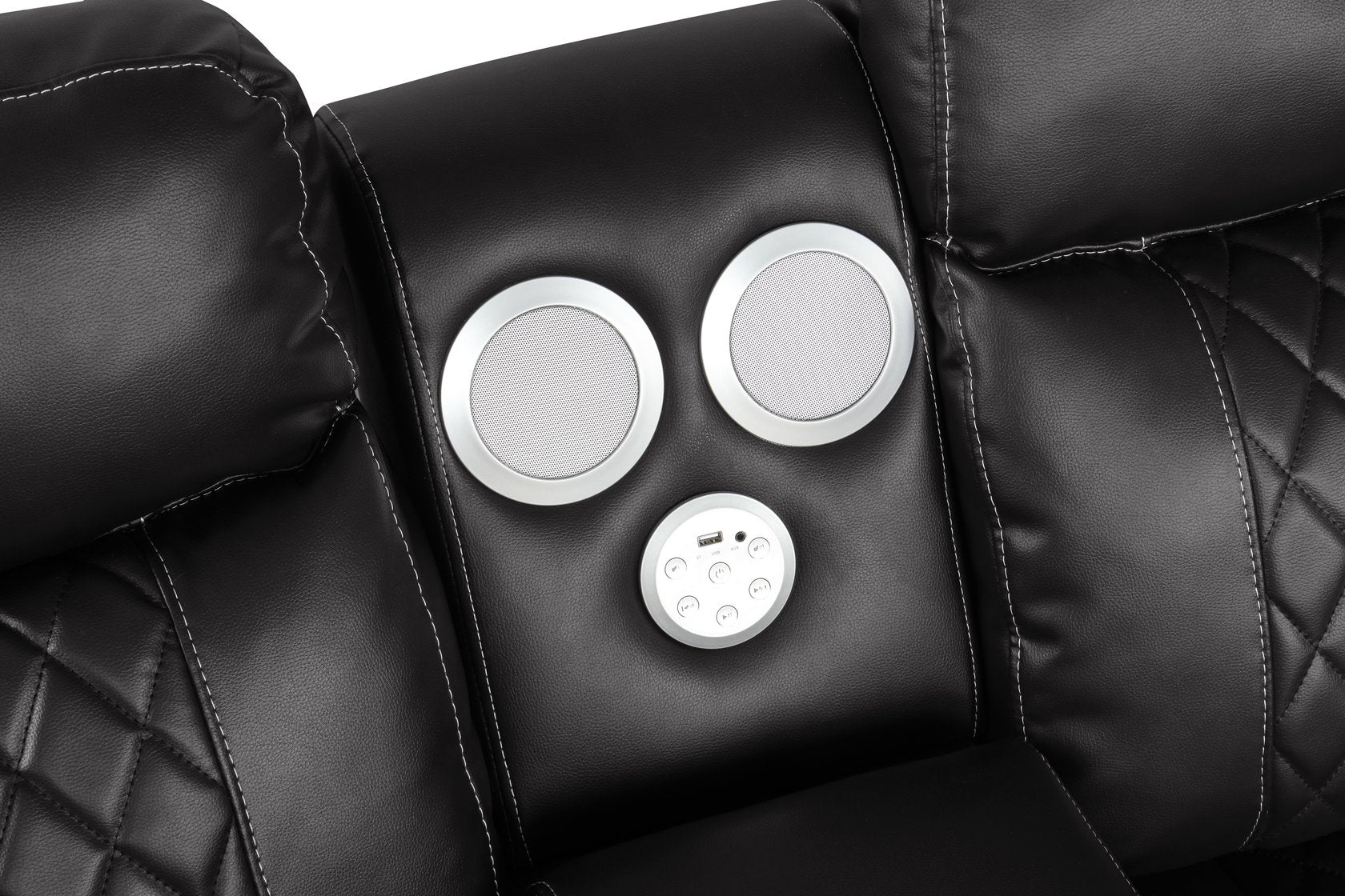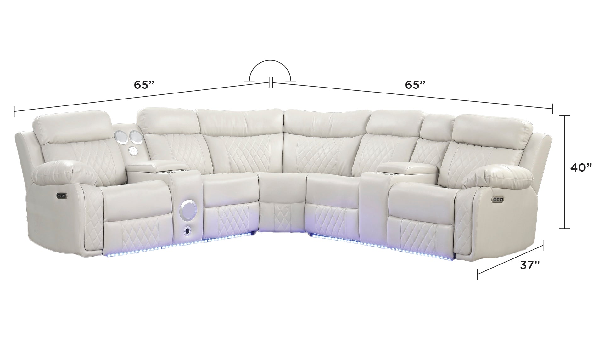 Elevate your living room with a contemporary power-reclining sectional that combines style, technology, and everyday convenience. Designed for modern entertainment and relaxation, this sectional pairs plush faux leather seating with integrated tech features—so you can stream music through built-in Bluetooth speakers, charge devices via USB, and set the mood with subtle LED lighting—while dual power recliners and a central console keep comfort and convenience within reach.