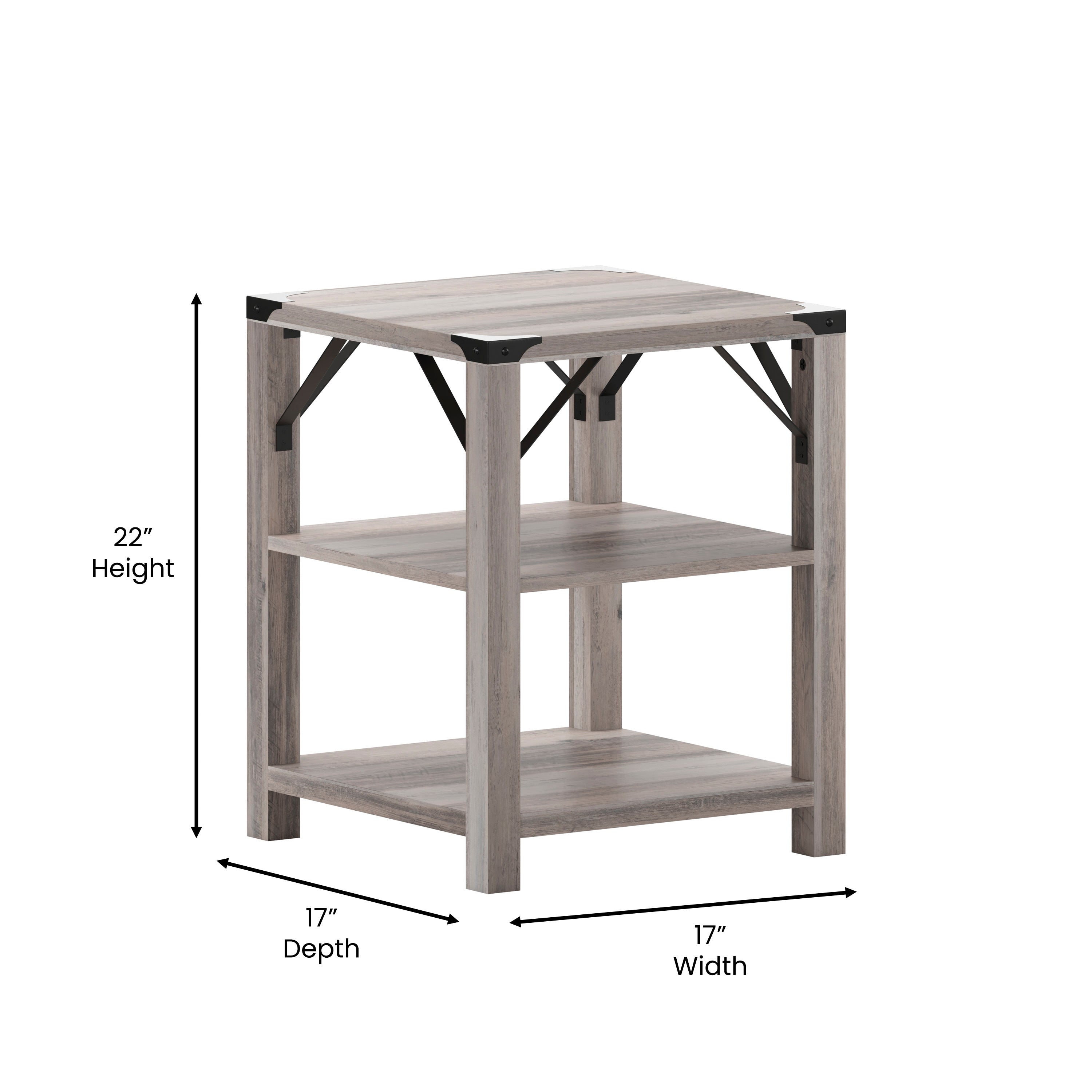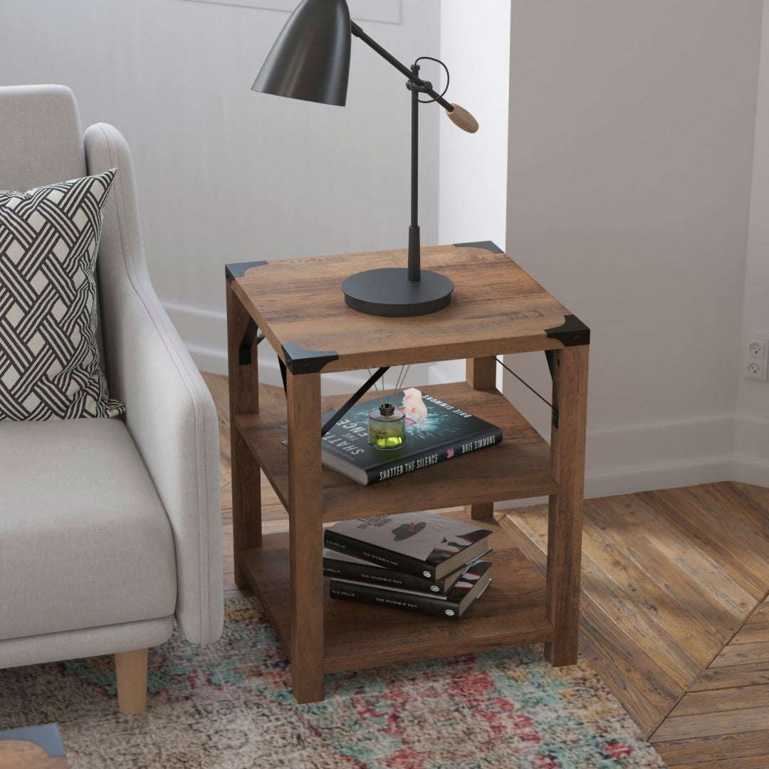 - Modern Farmhouse Side Table with Dual Storage Shelves