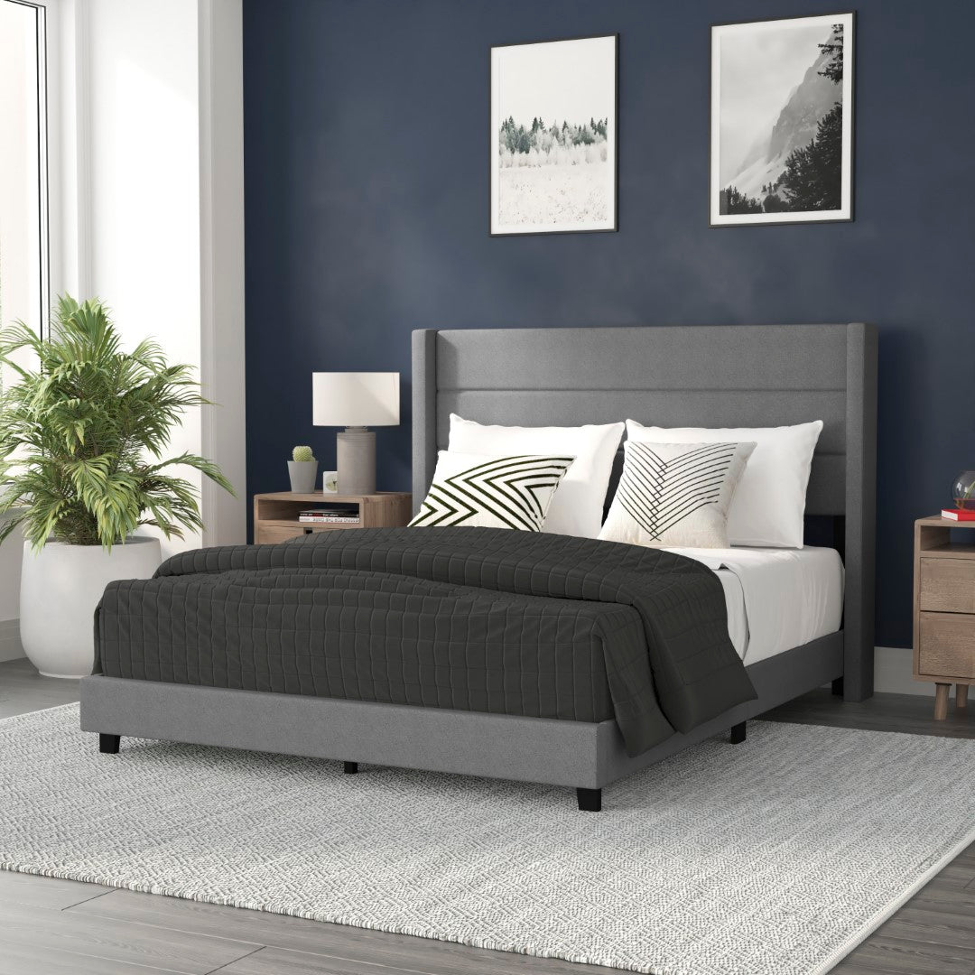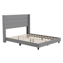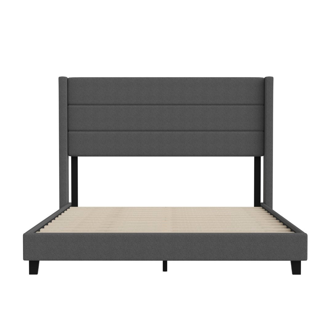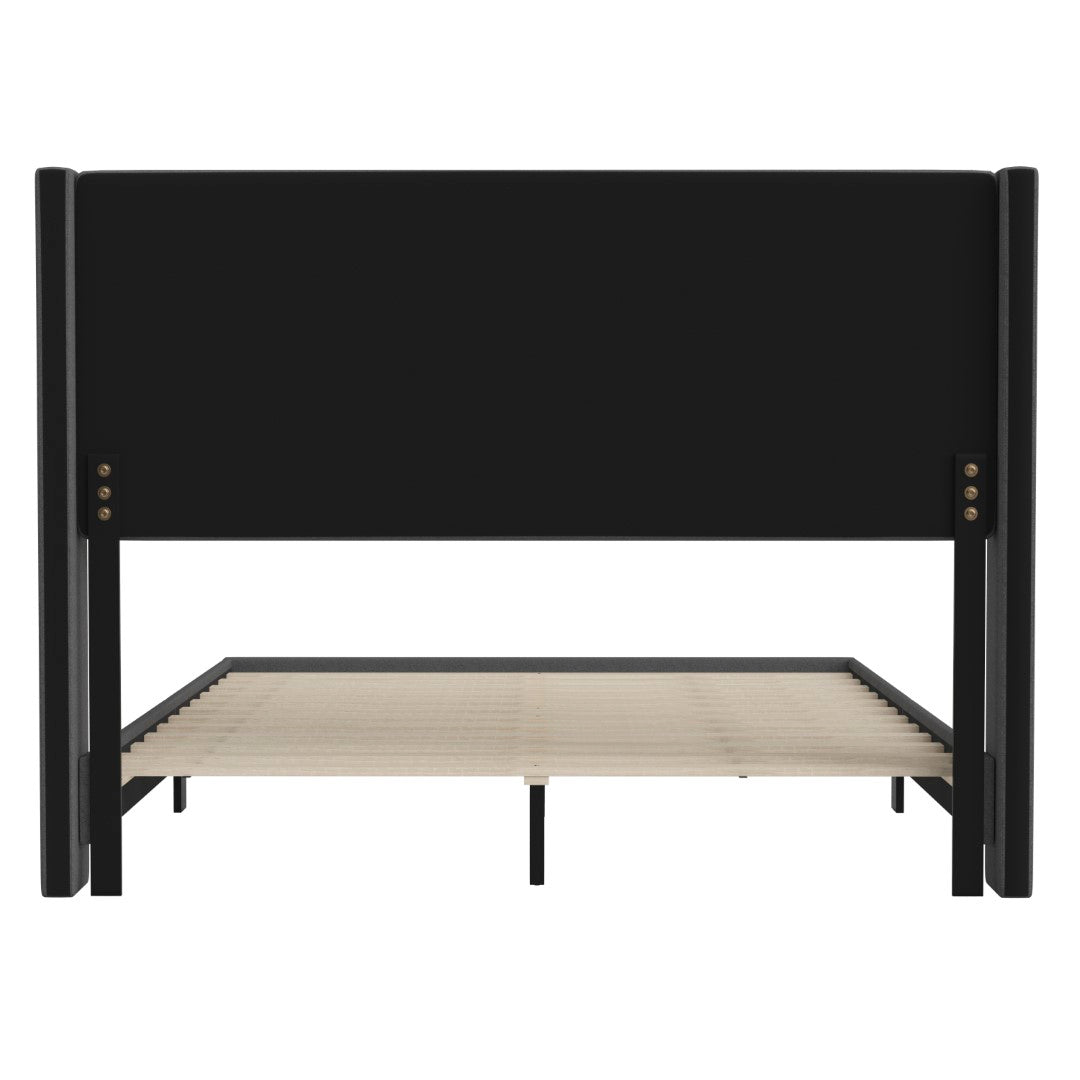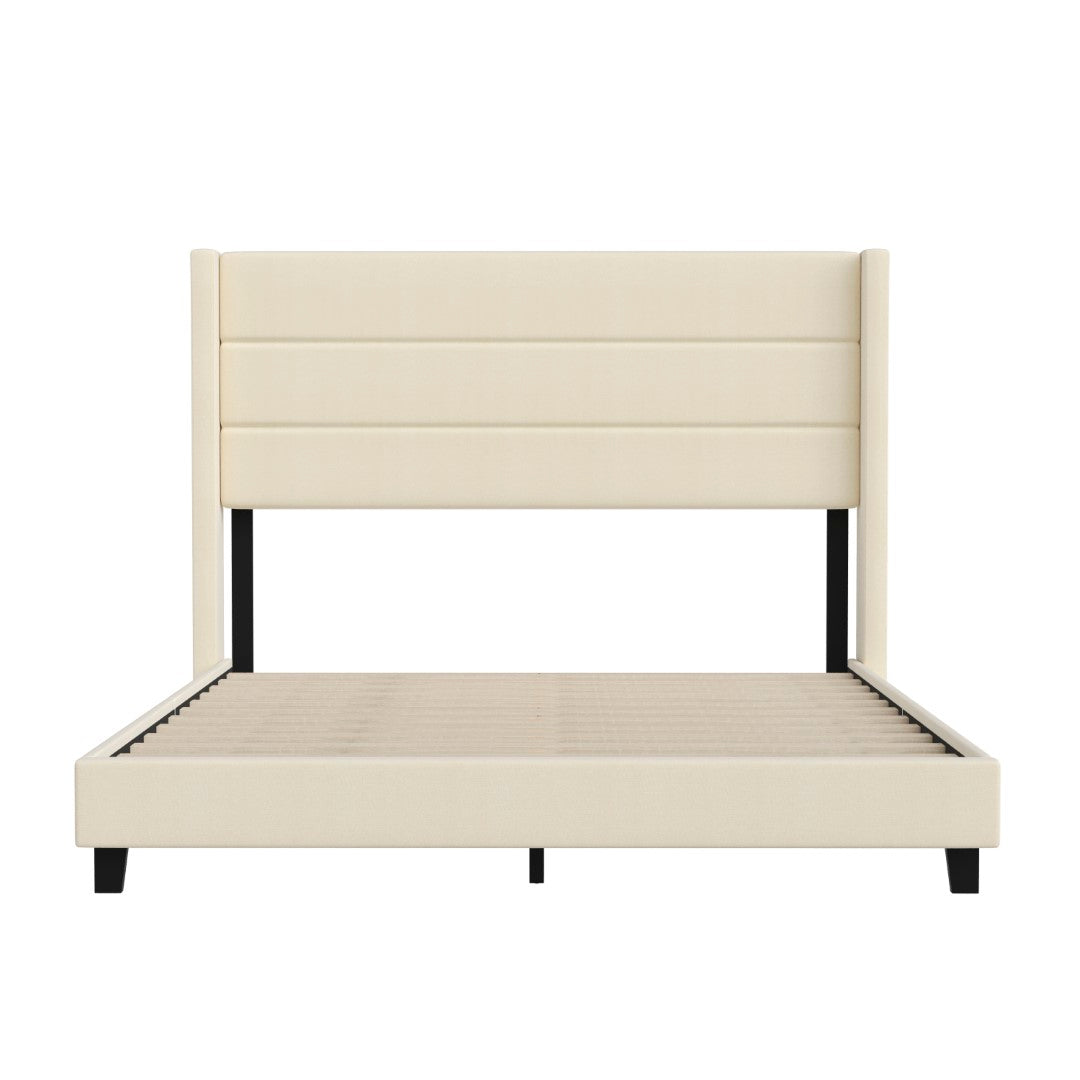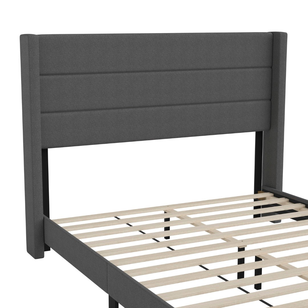 - Modern Upholstered Queen Wood Slat Platform Bed with Wingback Headboard
