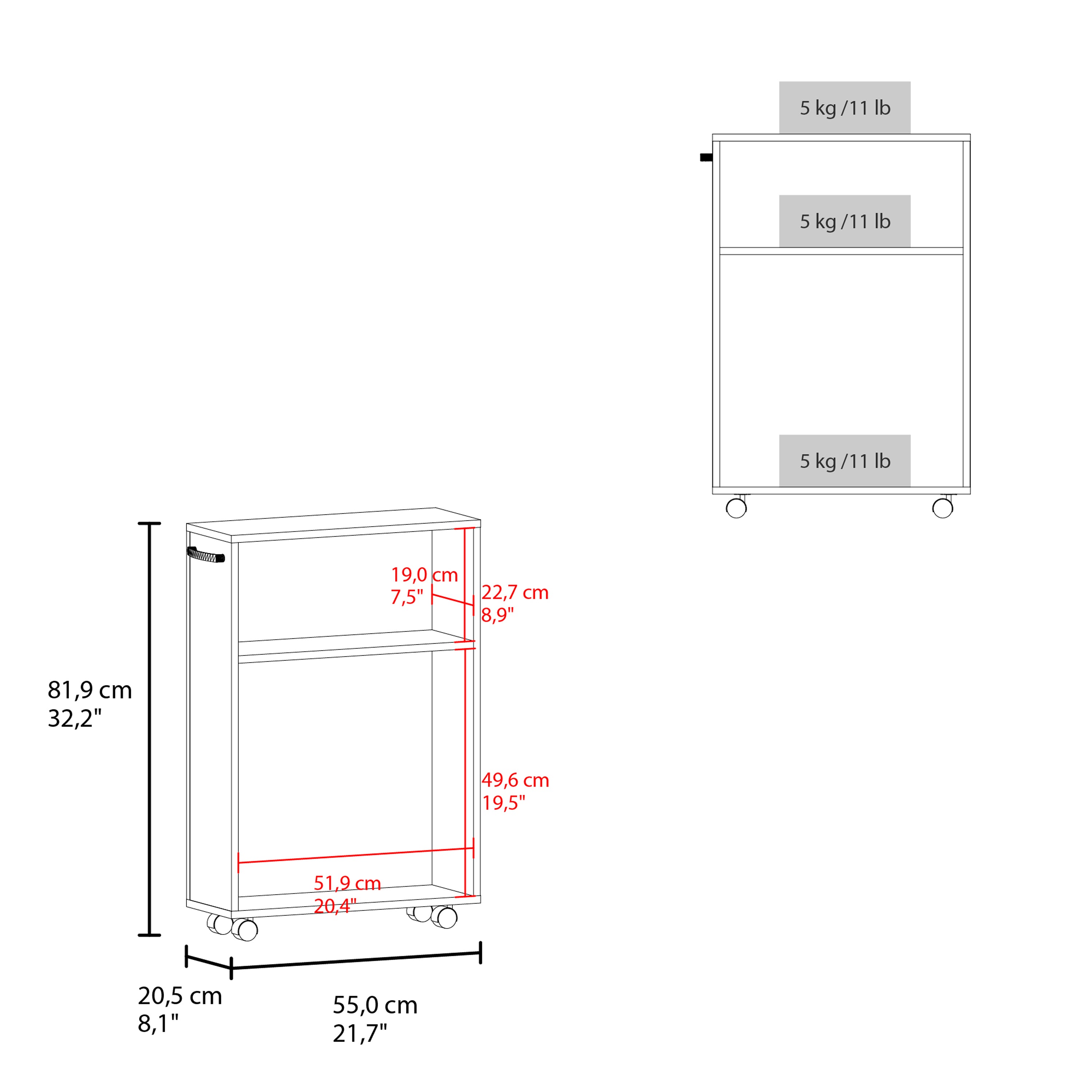 - Multiple open shelves: Ample storage for toiletries, cleaning products, pantry goods, or office supplies for easy visibility and access