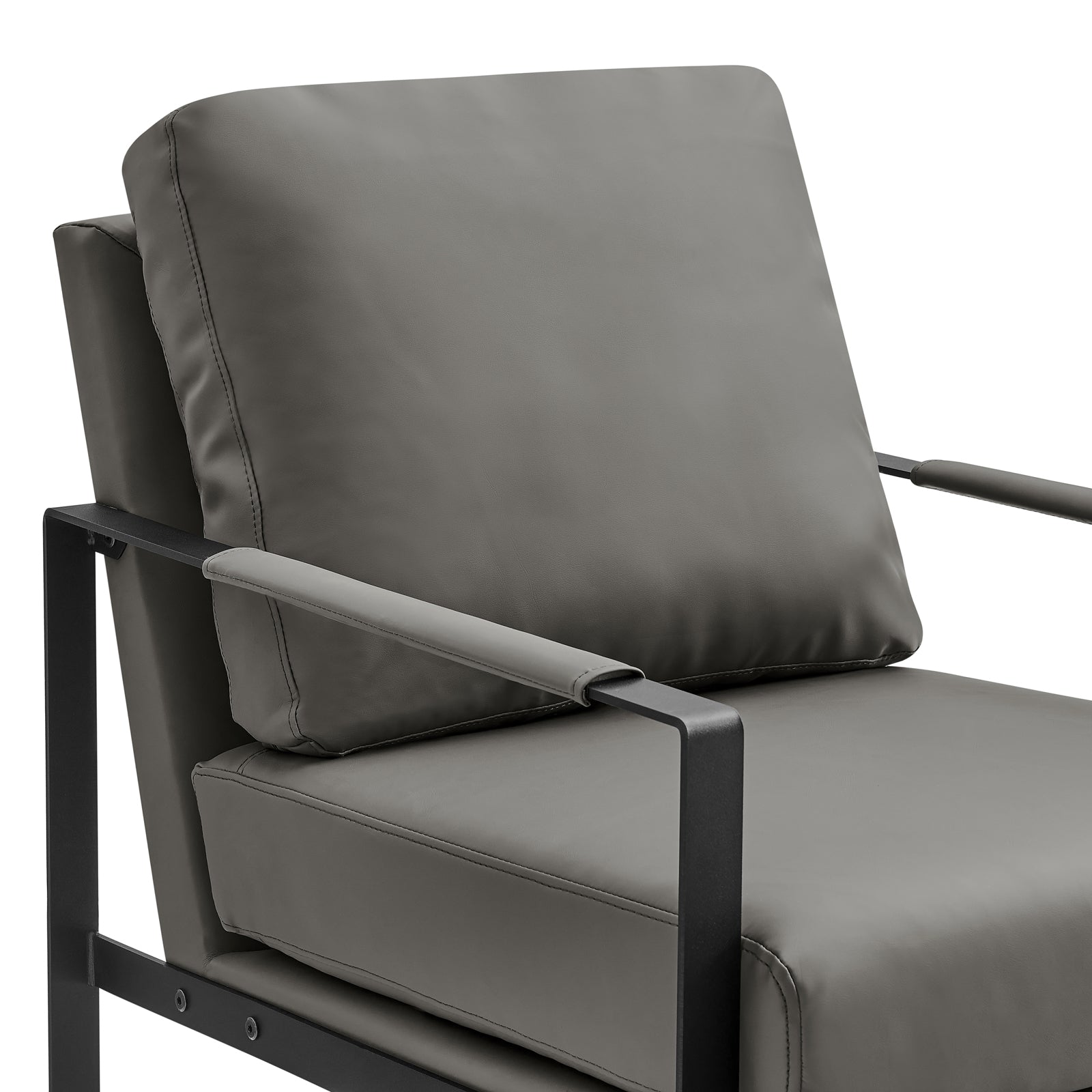 Upholstered with leatherette, the Bettina Lounge Chair is the epitome of quality and comfort. The leather cushions are supported by a stylish and durable metal frame with removable armrest covers. A thoughtful composition of soft and sturdy.- Leatherette over foam seat and back